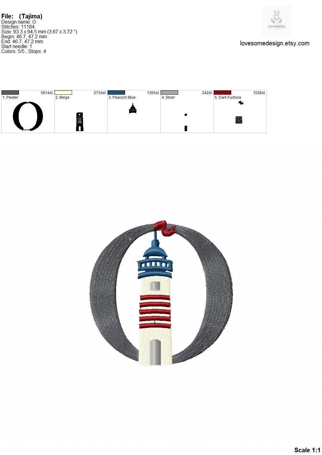 Lighthouse Monogram 4inch Embroidery Font, Nautical Machine Embroidery Letters Digital File | Lovesome Design