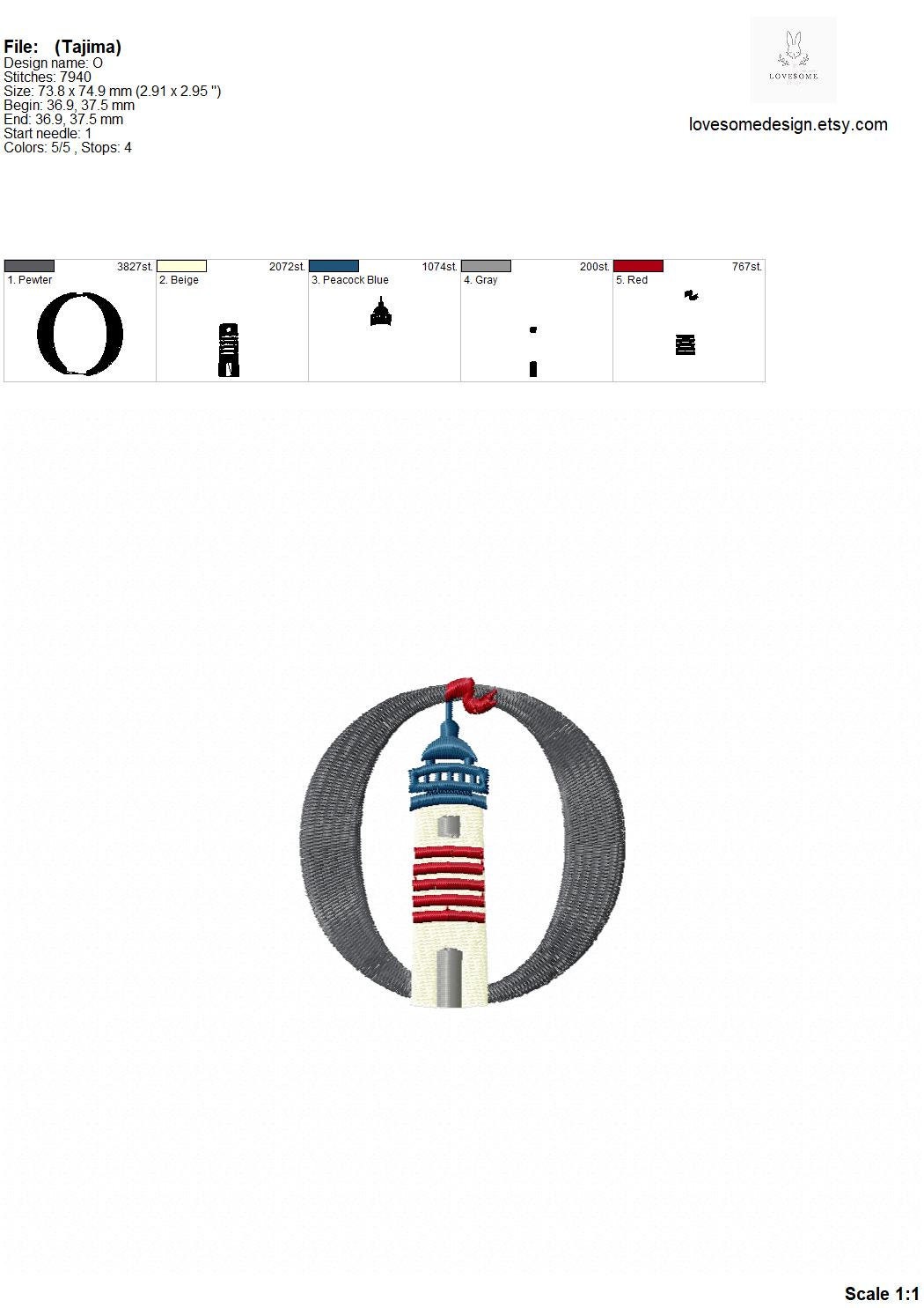 Lighthouse Monogram 3inch Embroidery Font, Nautical Machine Embroidery Letters Digital File | Lovesome Design