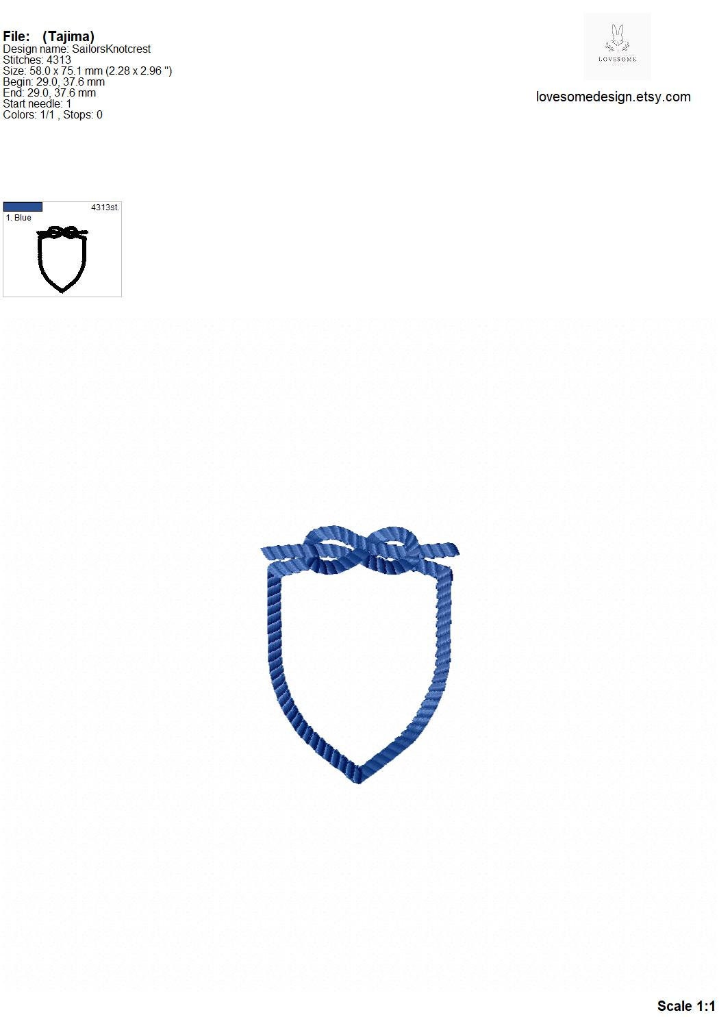 This listing includes one crest design in rope stitch with a sailors knot for machine embroidery in one size, each appr. in 3inch size.