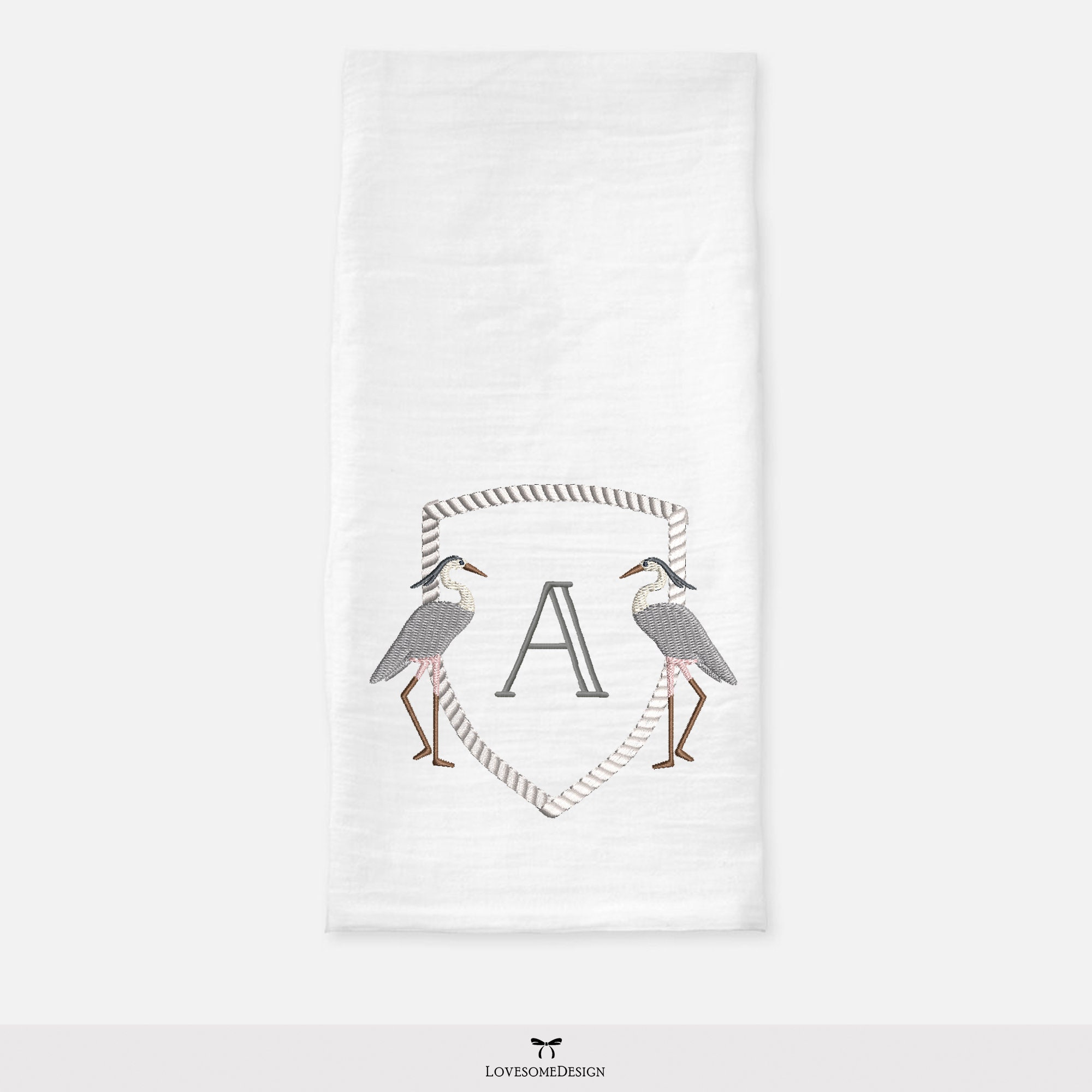 Crane Bird Rope Crest 5inch Summer Embroidery Design, Nautical Tropical Machine Embroidery Digital File | Lovesome Design