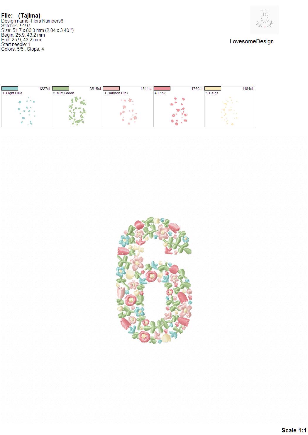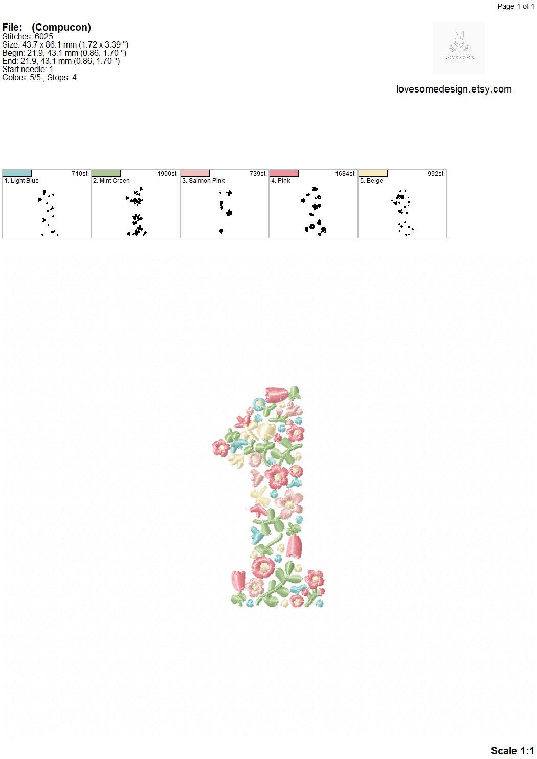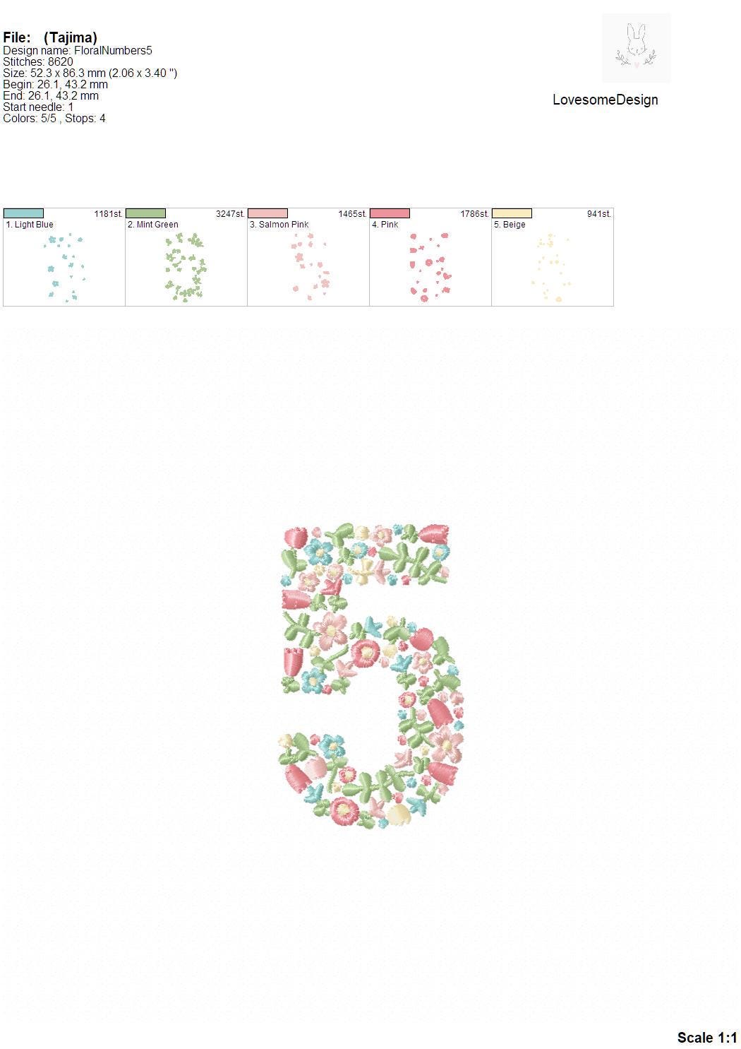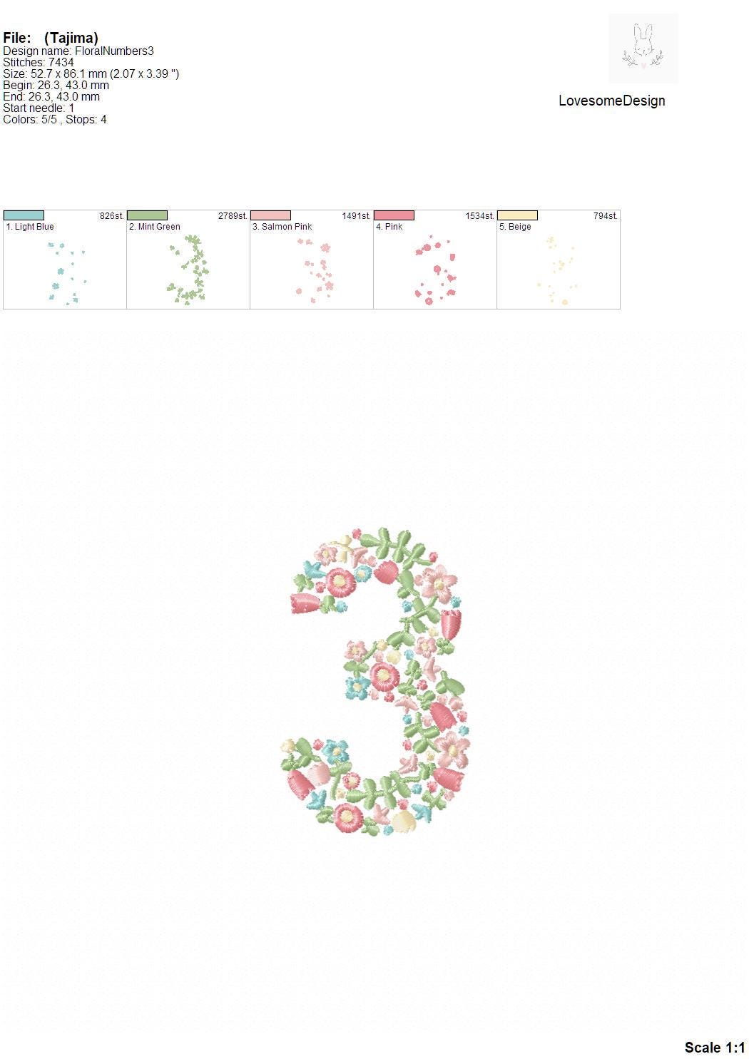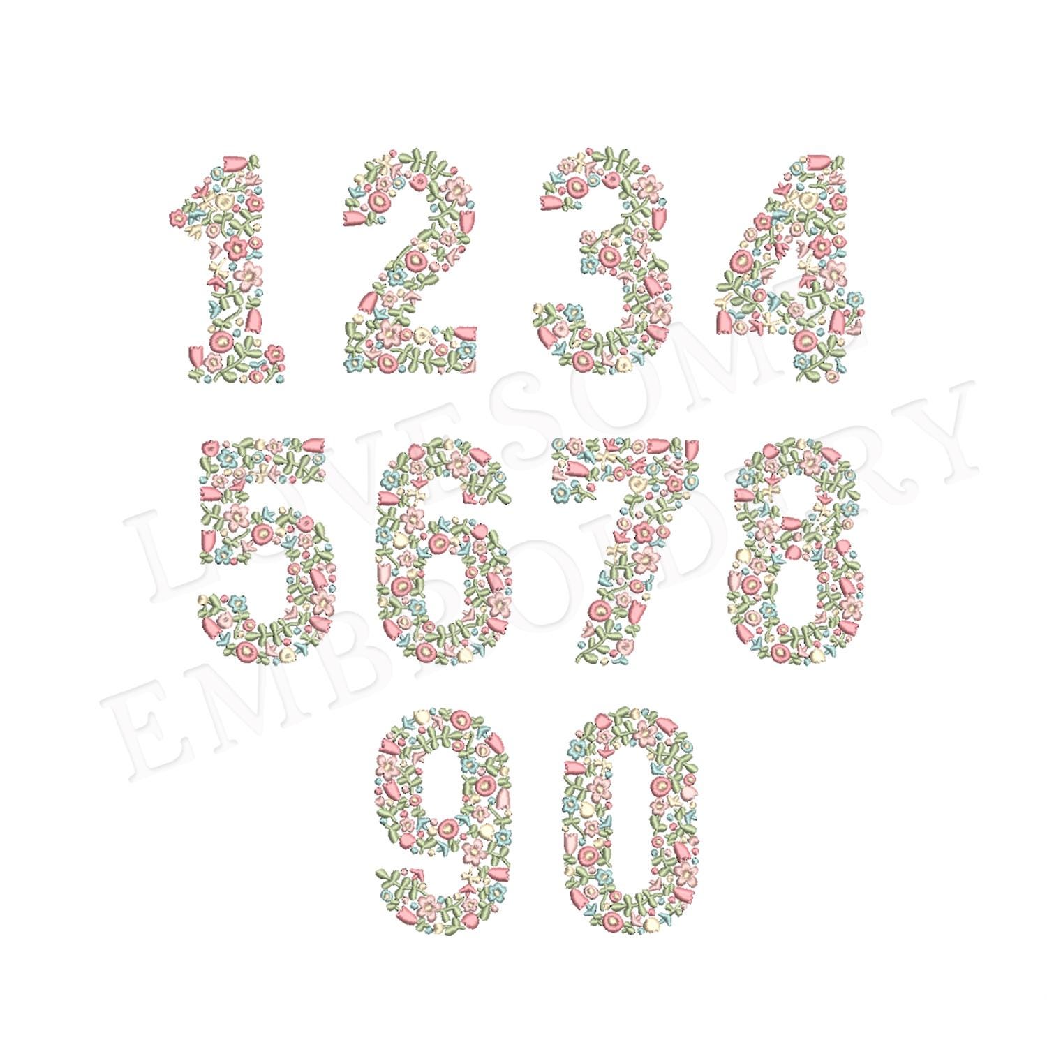 NEW Floral Numbers 3.5inch 0-9 Machine Embroidery Font Dainty Flowers Numbers in Spring Colors Digital Download | Lovesome Design