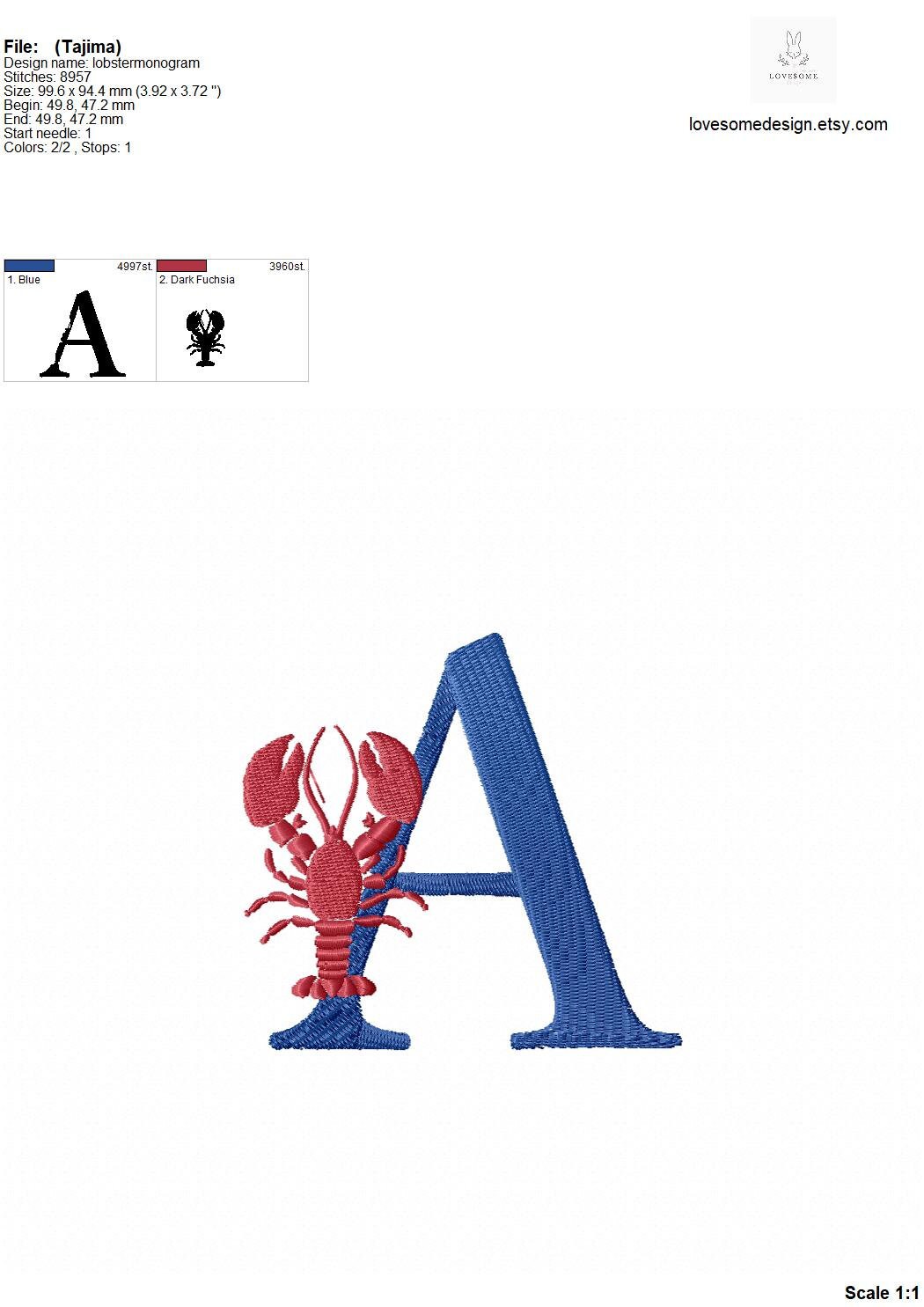 Lobster Monogram 4inch Summer Embroidery Font, Nautical Machine Embroidery Letters Digital File | Lovesome Design