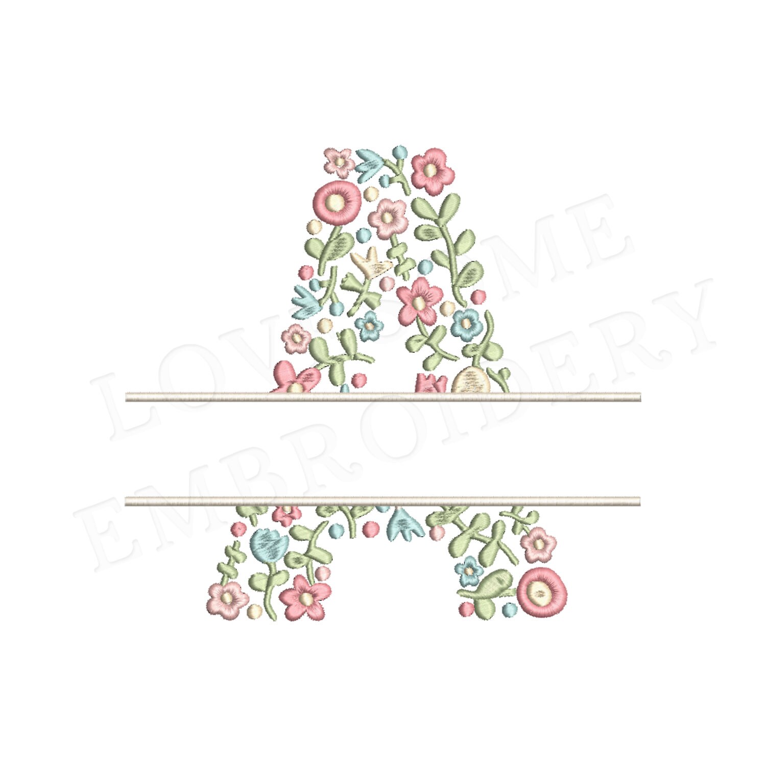 NEW Split Floral Letter A 4inch Machine Embroidery Design Dainty Flowers Split Font in Spring Colors Digital Download | Lovesome Design