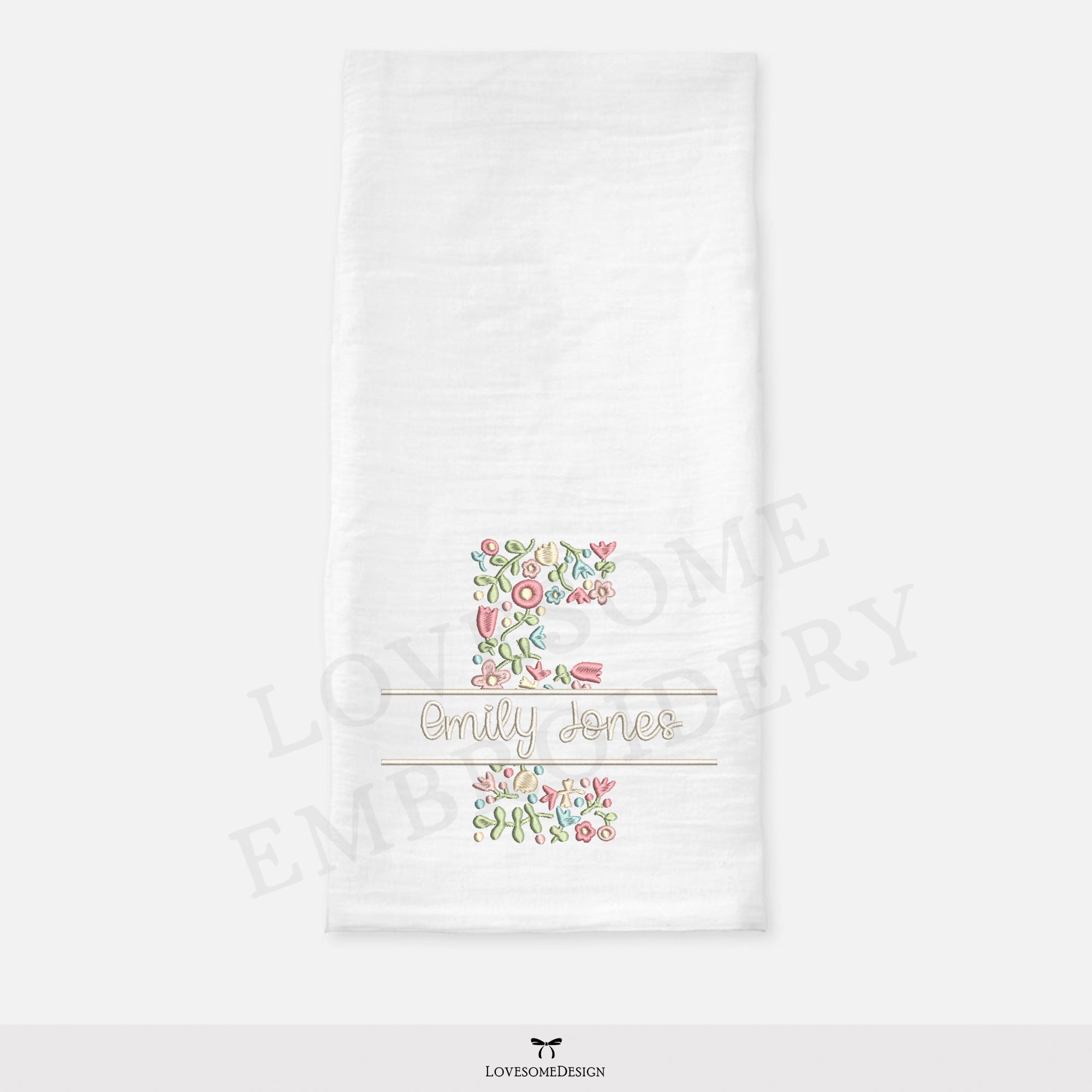 NEW Split Floral Letter E 4inch Machine Embroidery Design Dainty Flowers Split Font in Spring Colors Digital Download | Lovesome Design