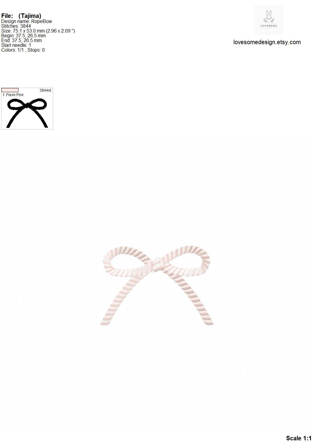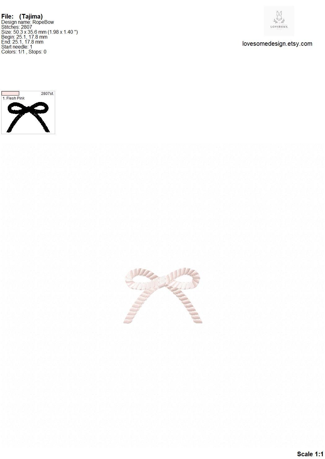 Rope Bow Five Sizes Machine Embroidery Design, Lovely Mini Bows Multiple Size Customizable Embroidery Digital File | Lovesome Design