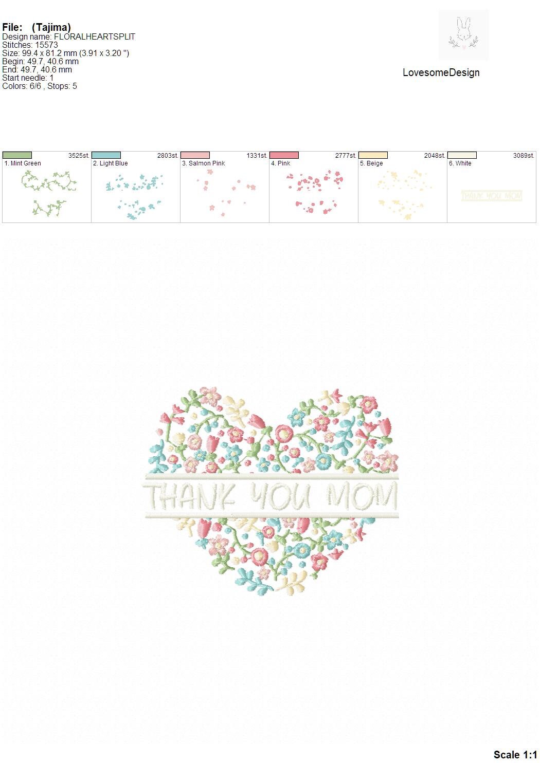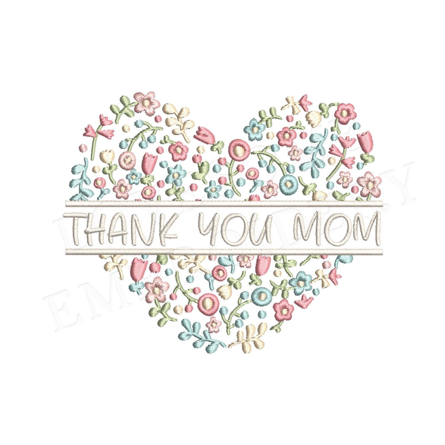 Thank You Mom 4inch Floral Fill Heart Split Embroidery Design Machine Embroidery File Digital Download | Lovesome Design