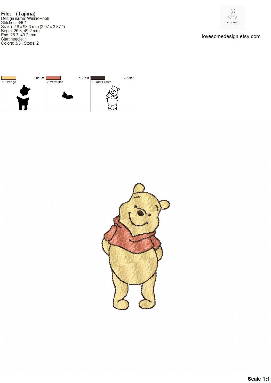 This listing features a machine embroidery file of Winnie the Pooh design in 4 inch size.