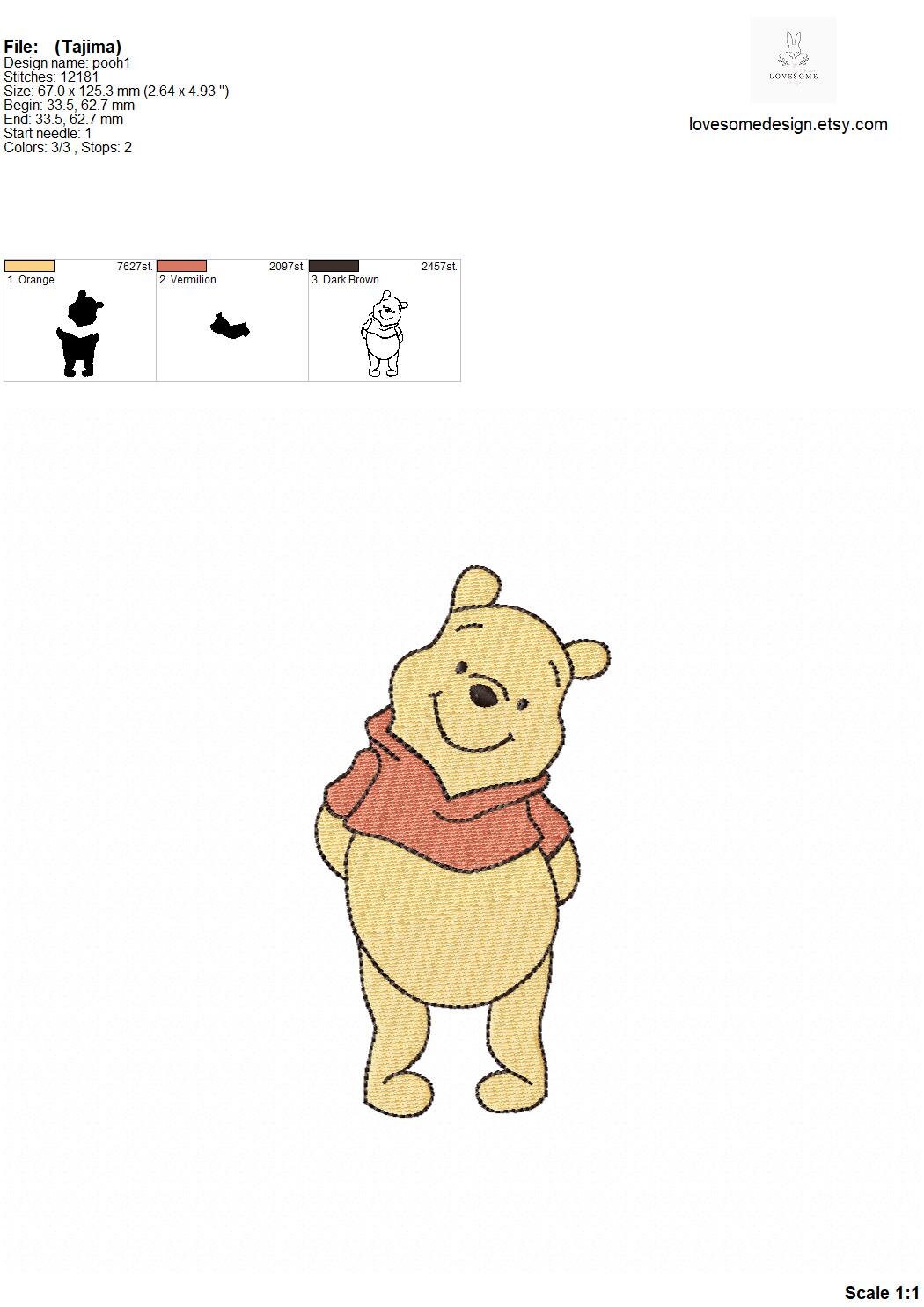 This listing features a machine embroidery file of Winnie the Pooh design in 5 inch size.