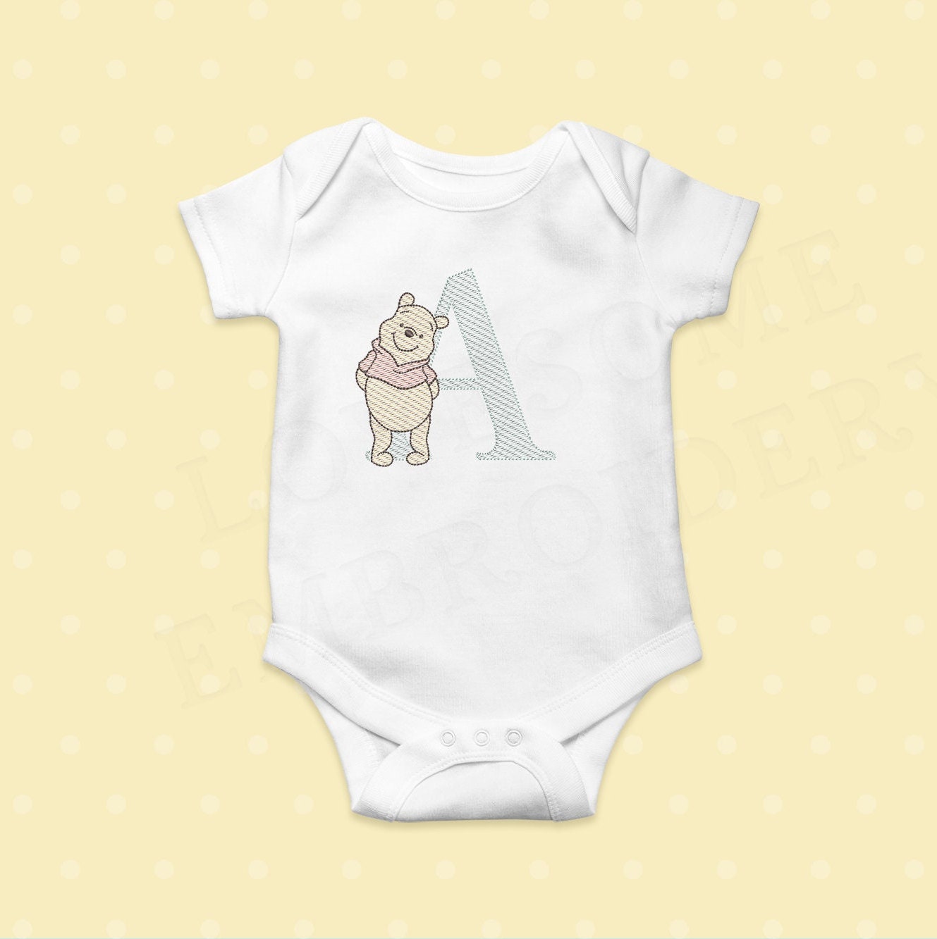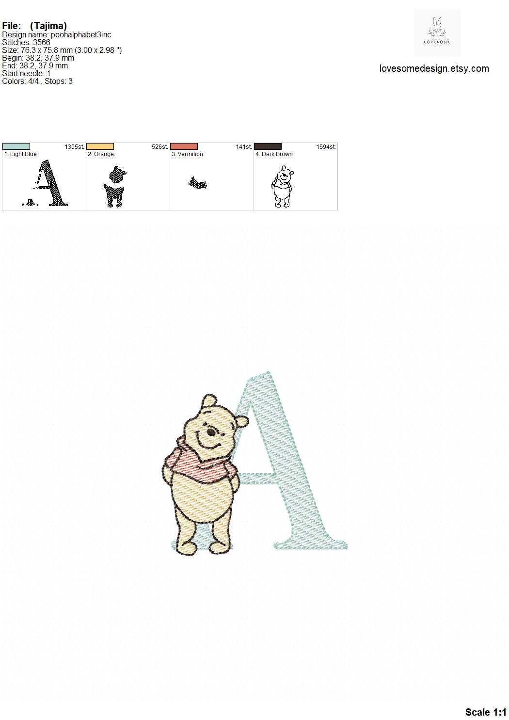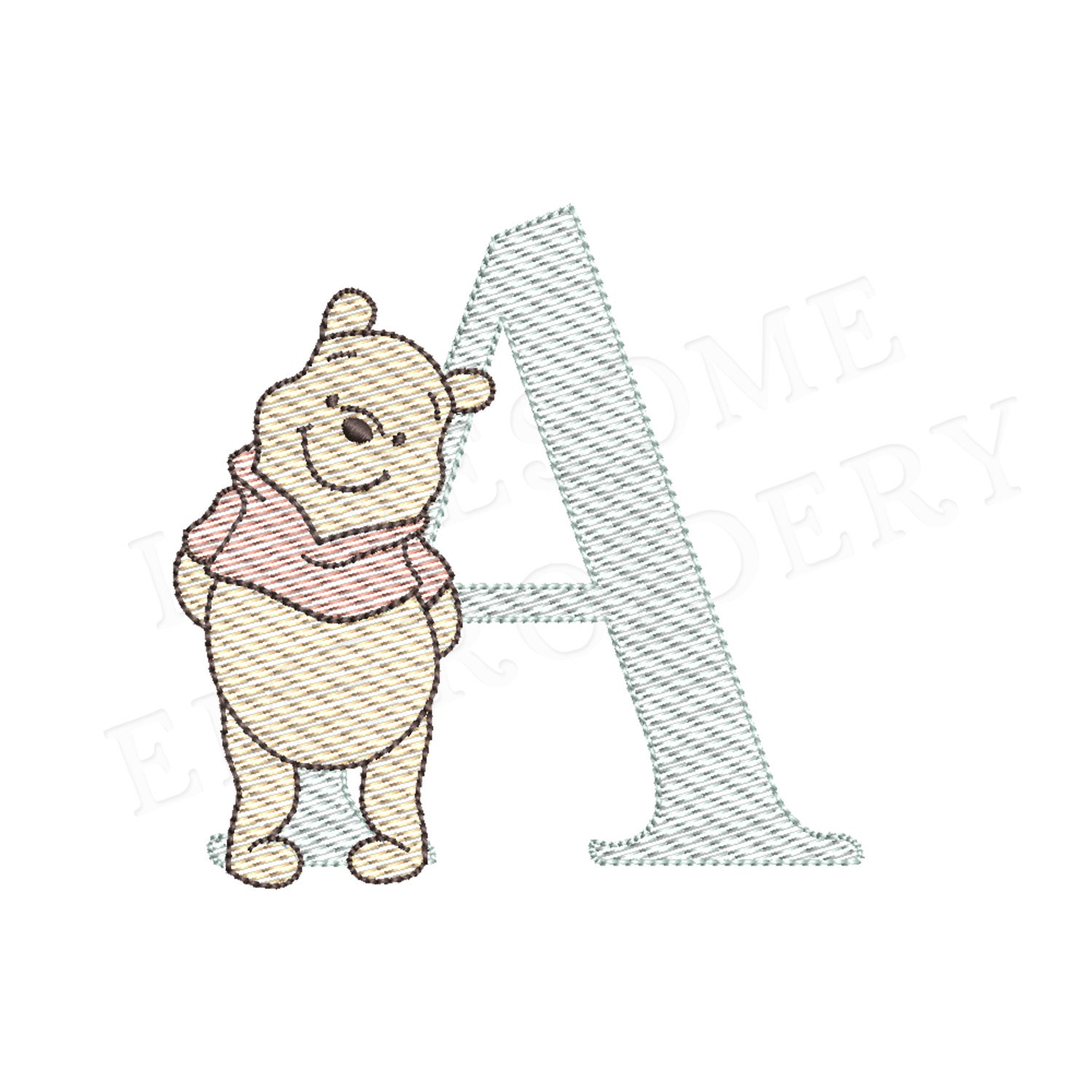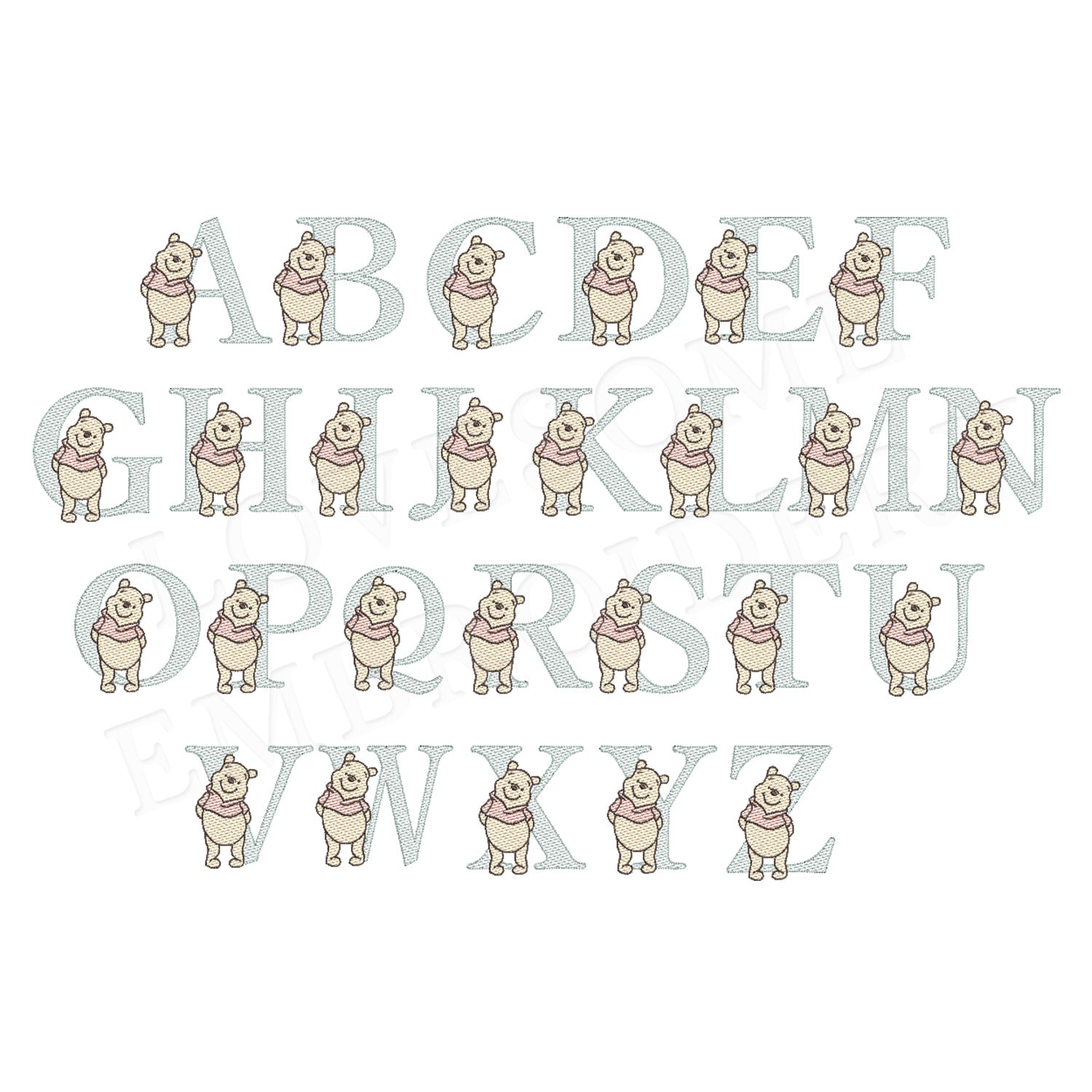 Pooh Bear 3inch Quick Stitch Alphabet A-Z Machine Embroidery Font Baby Embroidery Digital Download | Lovesome Design