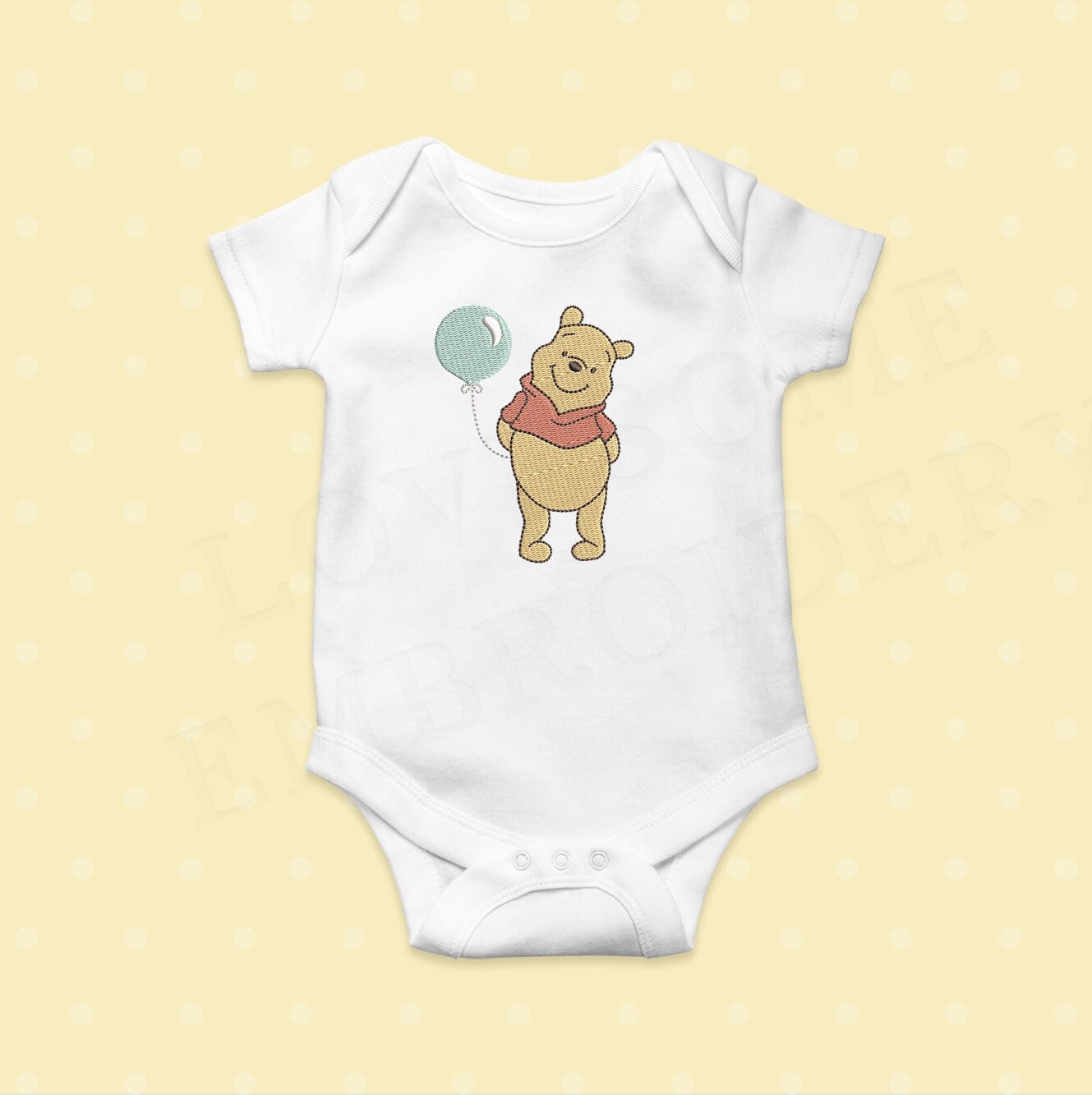Pooh Bear with Balloon 4inch Machine Embroidery Design Baby Embroidery Digital Download | Lovesome Design