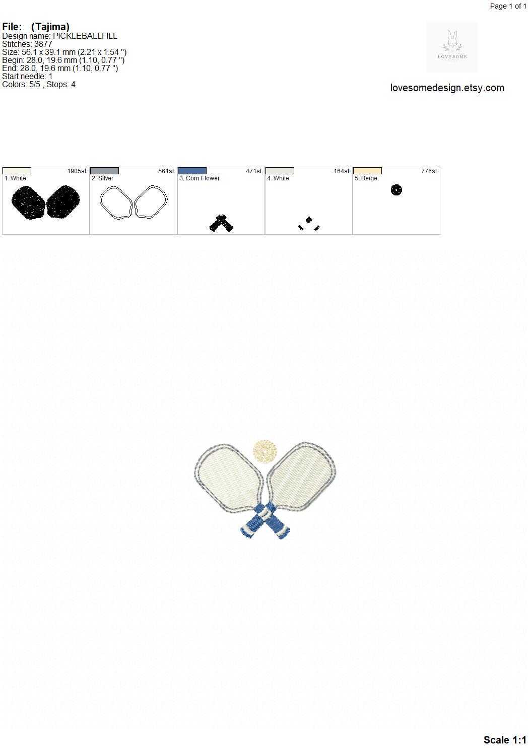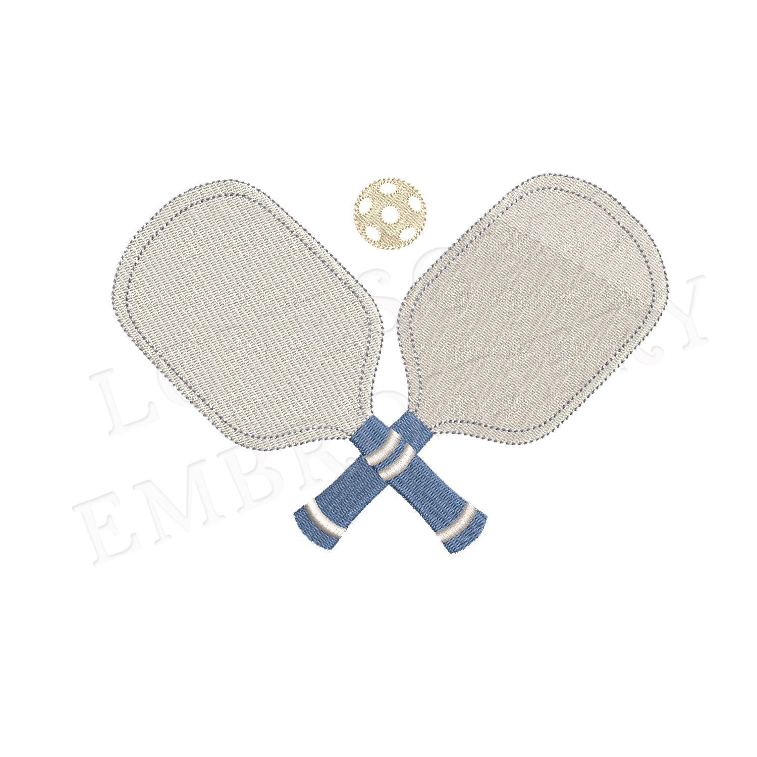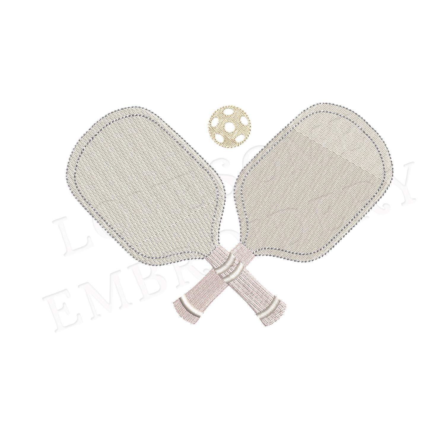 This listing includes pickleball paddles design for machine embroidery in one size, appr. in 2inch size.