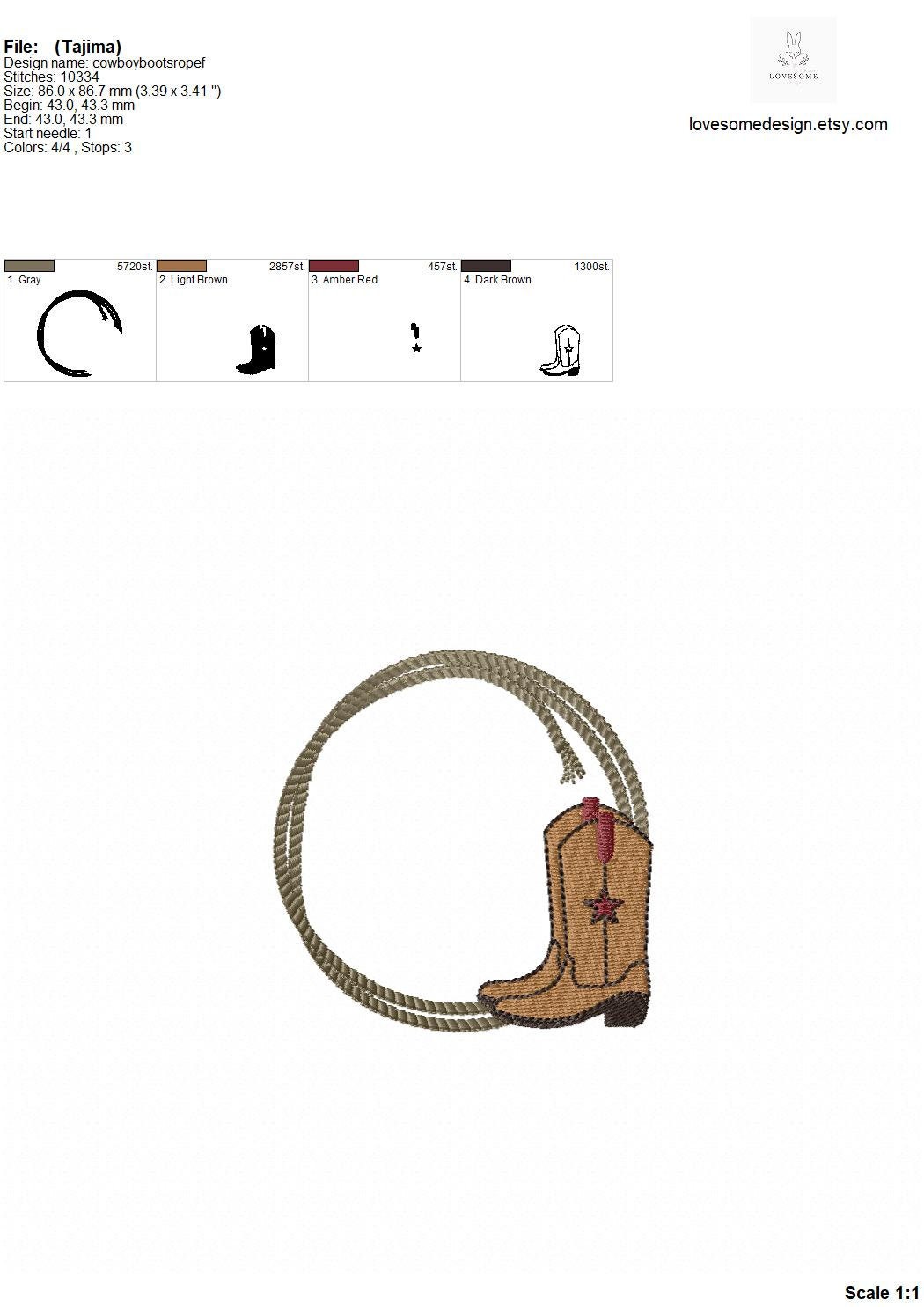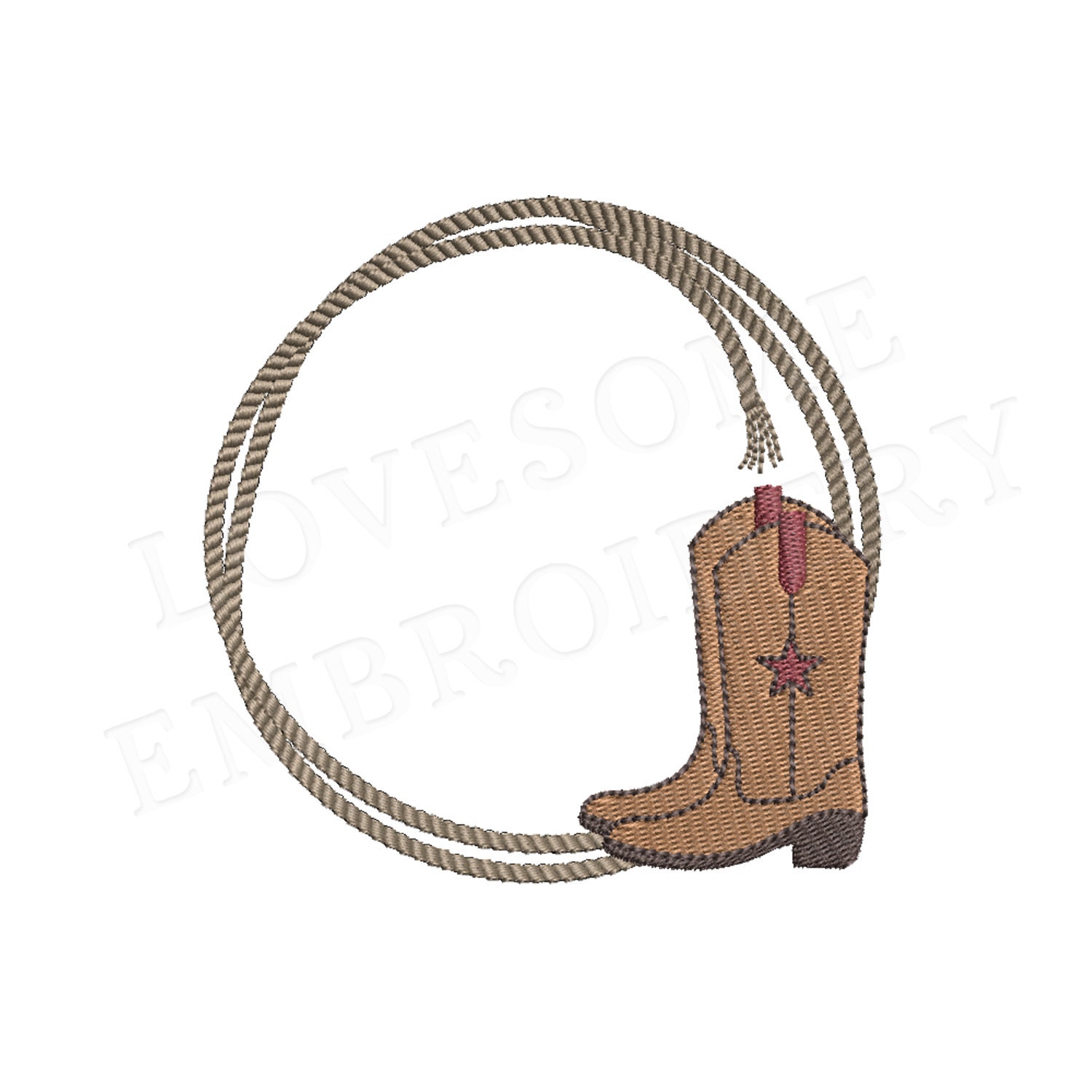 This listing includes one cowboy rope frame with cowboy boots design for machine embroidery in 3.5inch size.