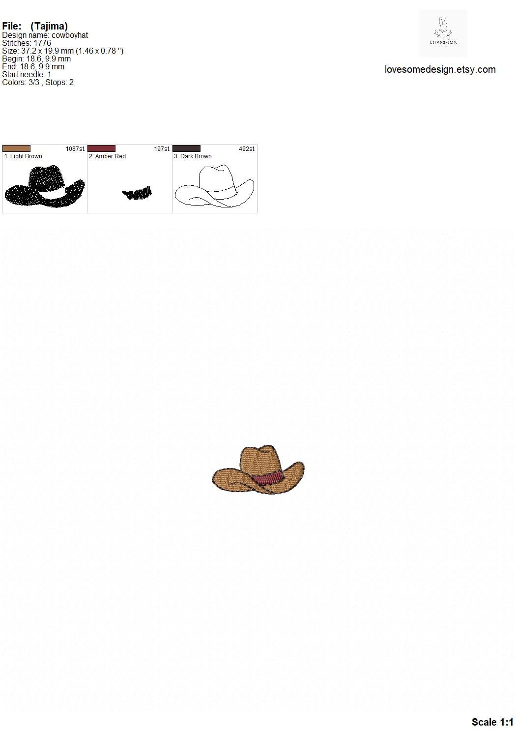Cowboy Hat Mini Embroidery Design Multisize, Western Machine Embroidery Digital File | Lovesome Design