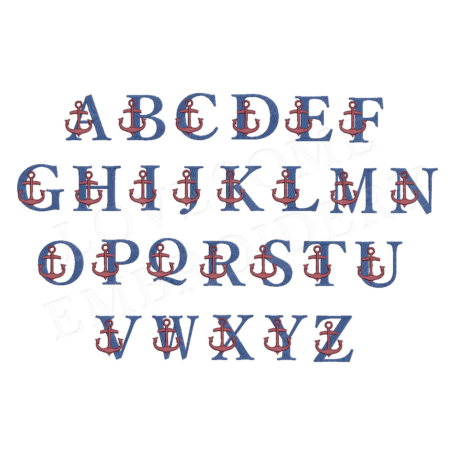 Anchor Monogram 4inch Embroidery Font, Nautical Machine Embroidery Letters Digital File | Lovesome Design