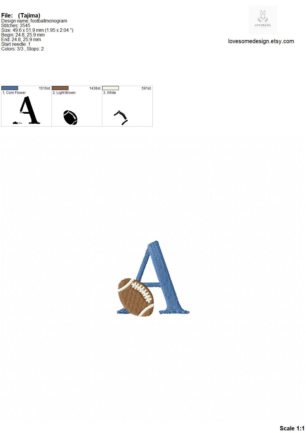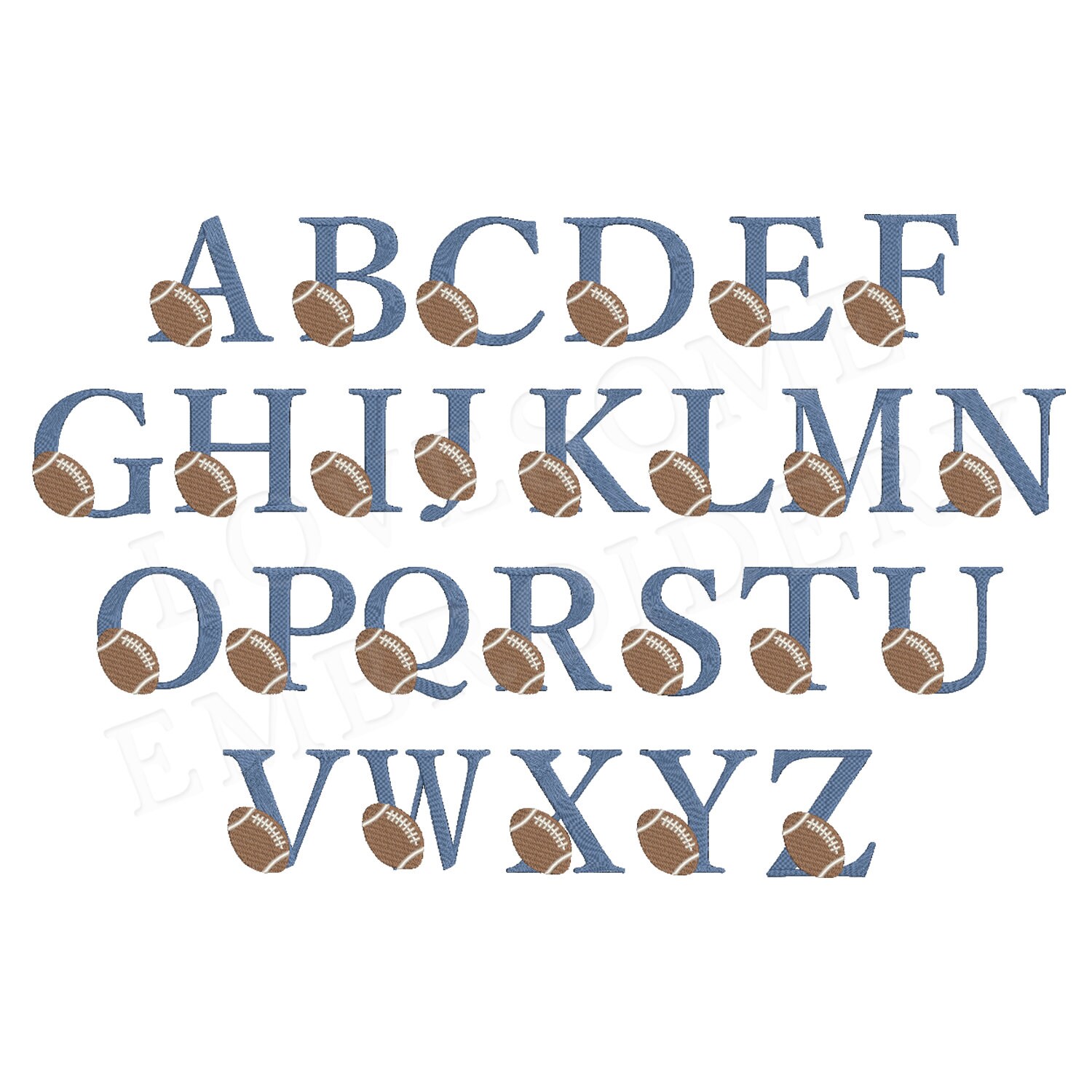 American Football 2inch Monogram A-Z Embroidery Font, Sports Machine Embroidery Digital File | Lovesome Design