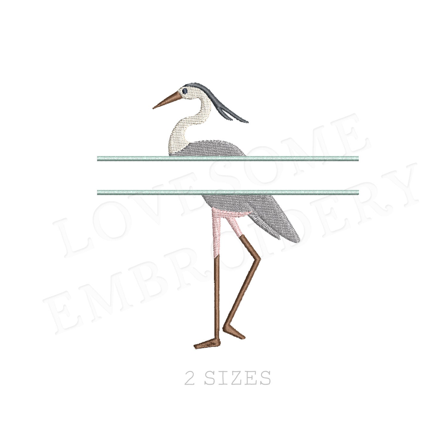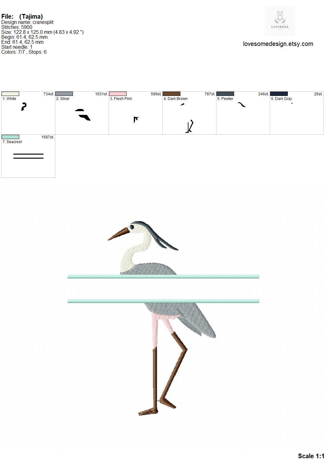 This listing includes one split crane bird design for machine embroidery in two sizes, each appr. in 4inch for 4x4 and and 5inch for 5x7 and bigger embroidery hoops.