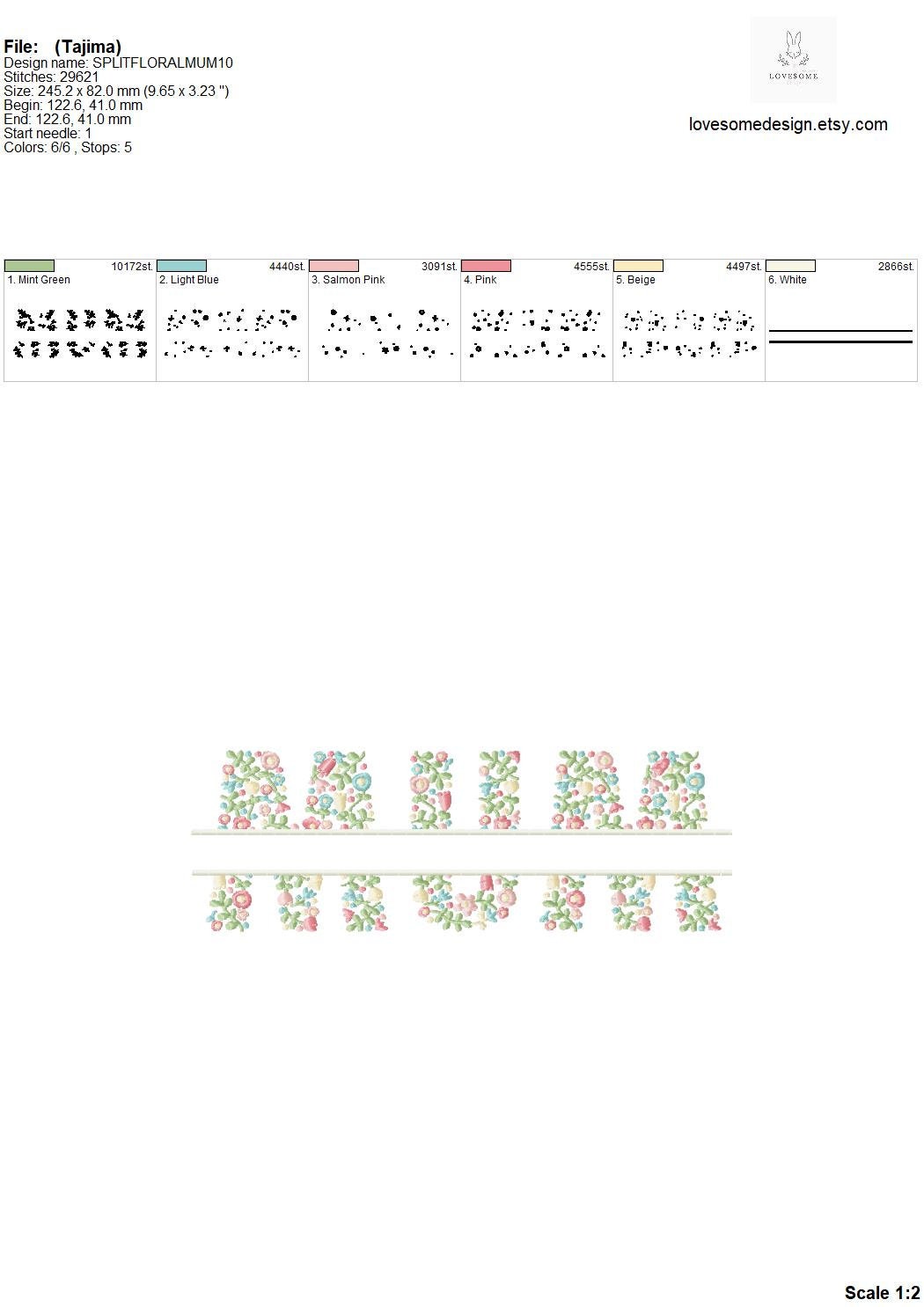 Floral Fill Mum Split 10inch Embroidery Design Machine Embroidery File Digital Download | Lovesome Design