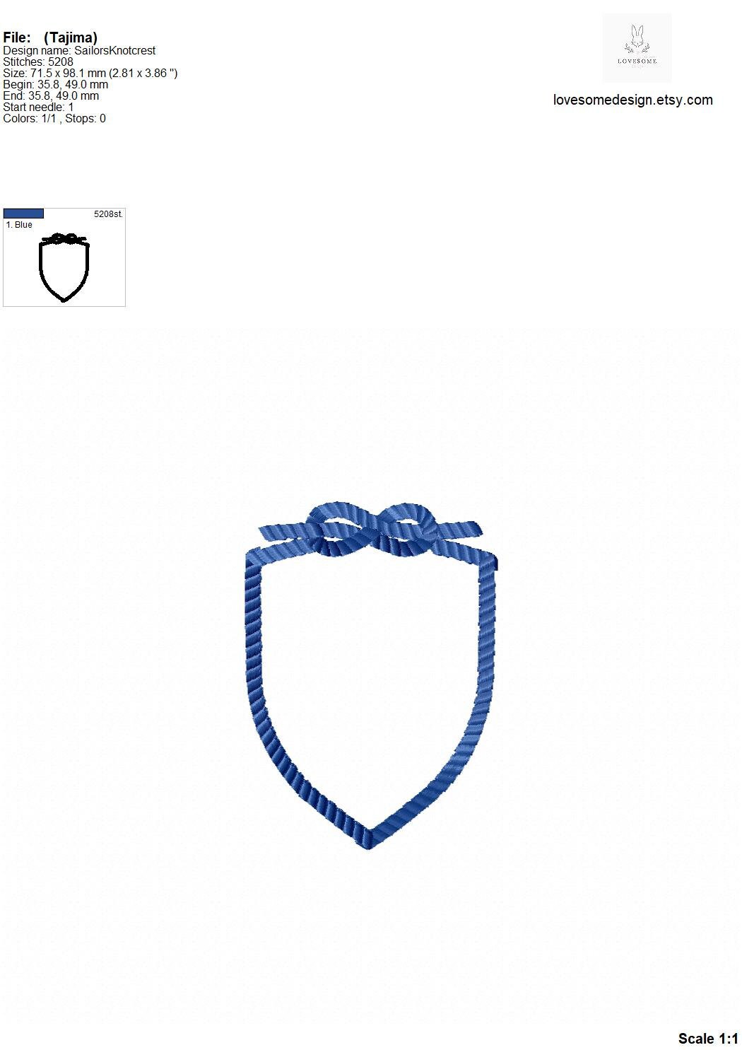 This listing includes one crest design in rope stitch with a sailors knot for machine embroidery in one size, each appr. in 4inch size.