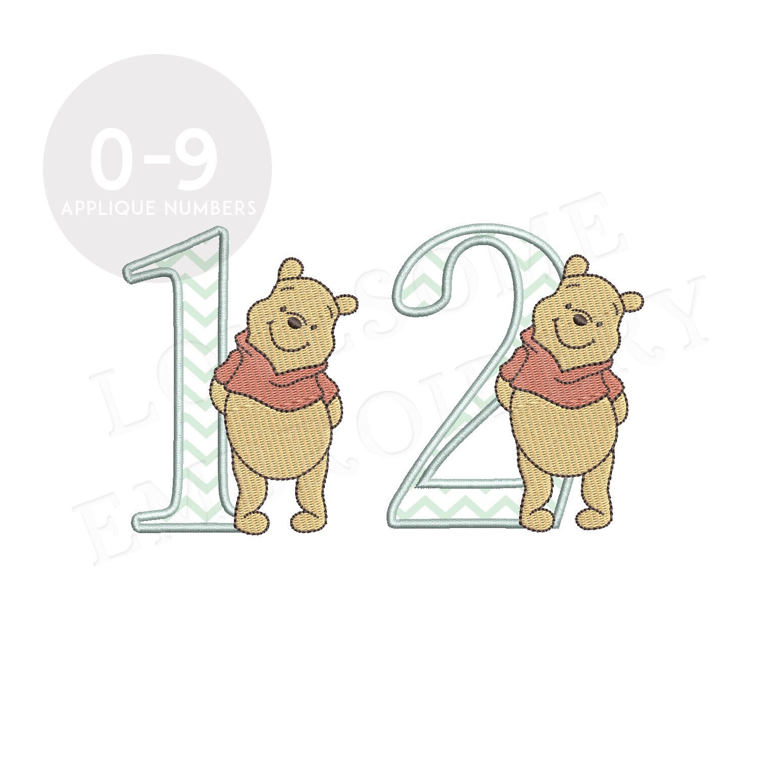 Applique Numbers 5inch Pooh Bear Bunting 0-9 Machine Embroidery Numbers Baby Embroidery Digital Download | Lovesome Design