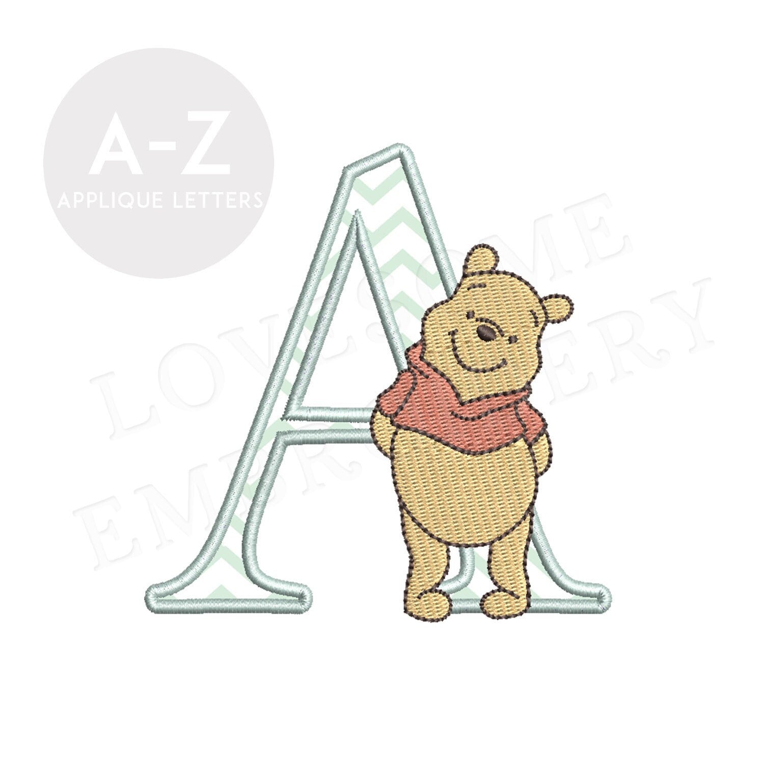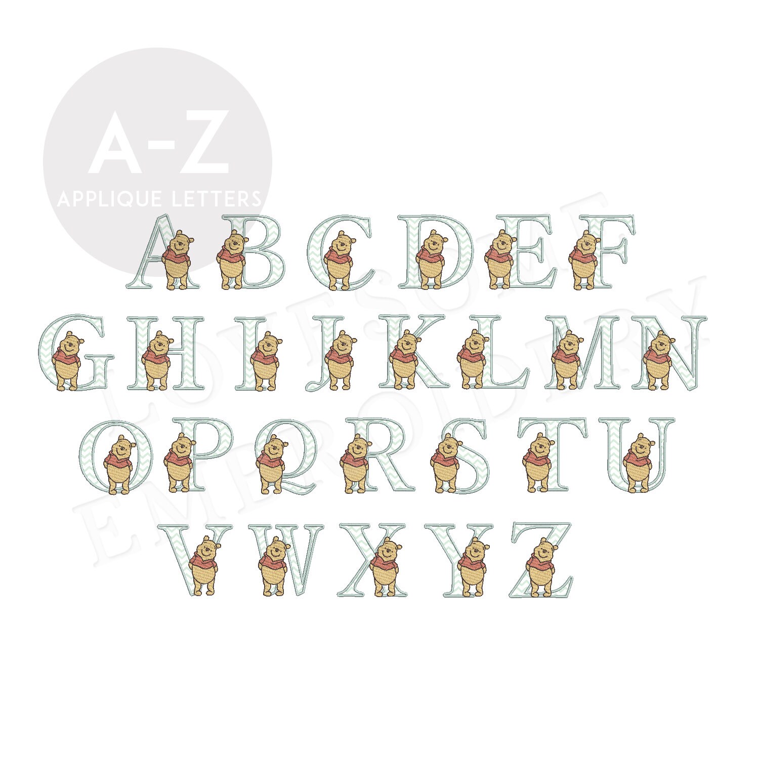Applique Alphabet 5inch Pooh Bear A-Z Machine Embroidery Font Baby Embroidery Digital Download | Lovesome Design