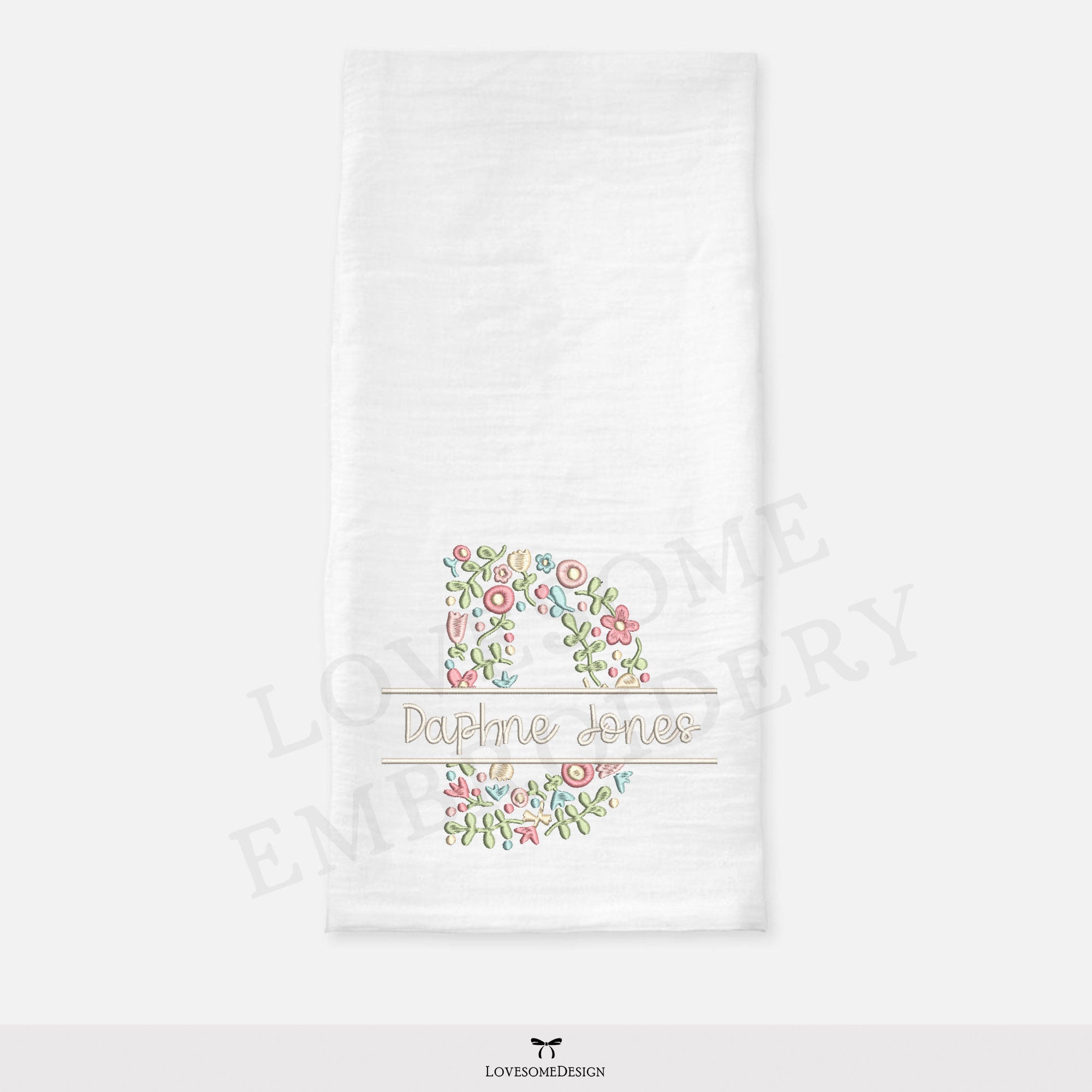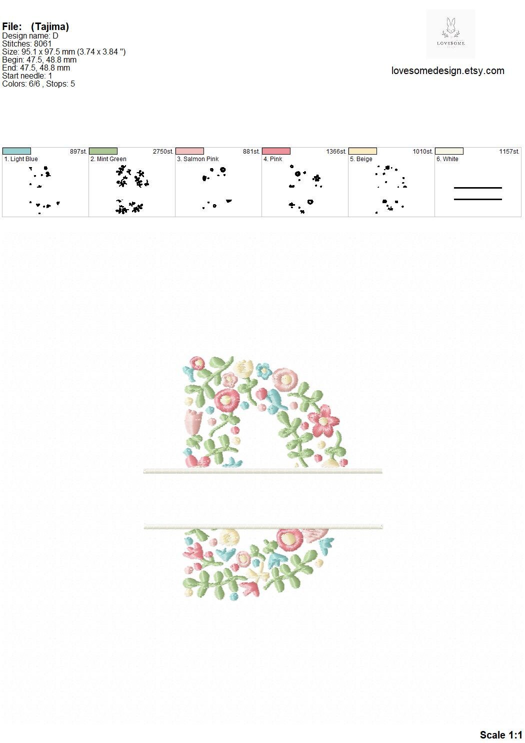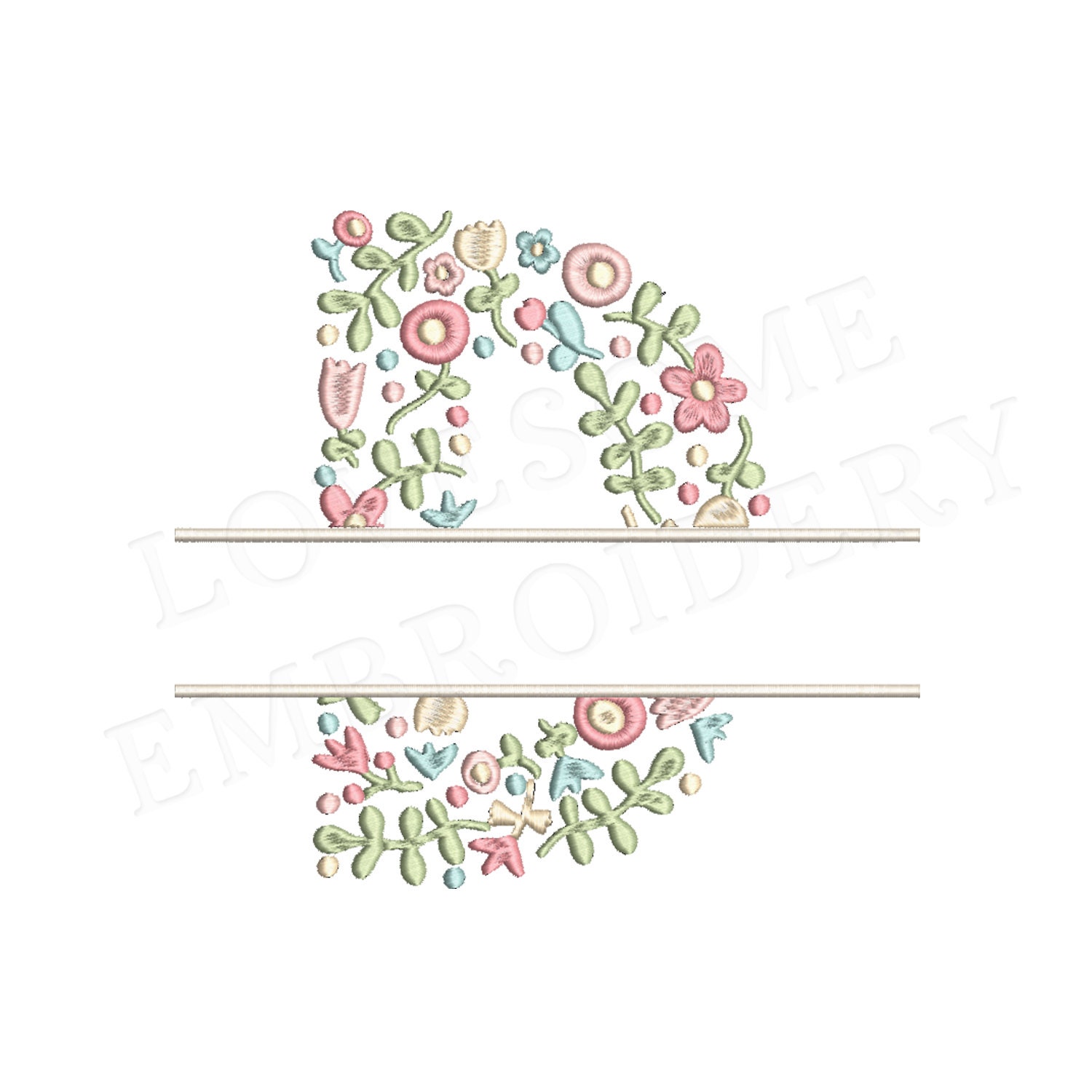 NEW Split Floral Letter D 4inch Machine Embroidery Design Dainty Flowers Split Font in Spring Colors Digital Download | Lovesome Design
