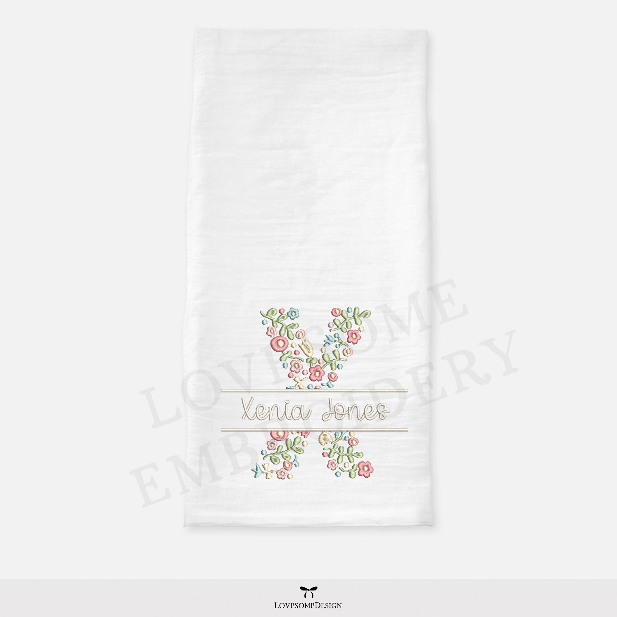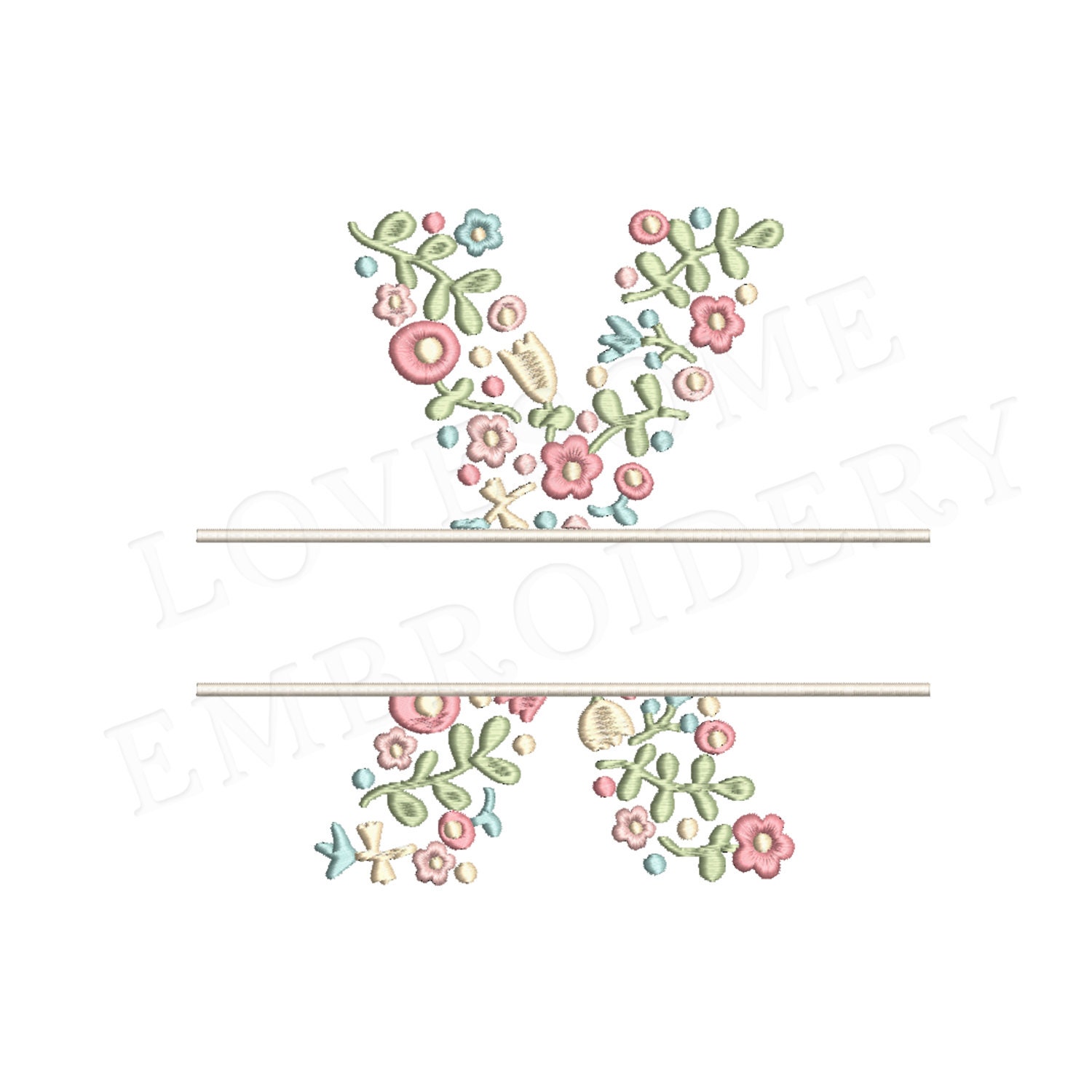 NEW Split Floral Letter X 4inch Machine Embroidery Design Dainty Flowers Split Font in Spring Colors Digital Download | Lovesome Design