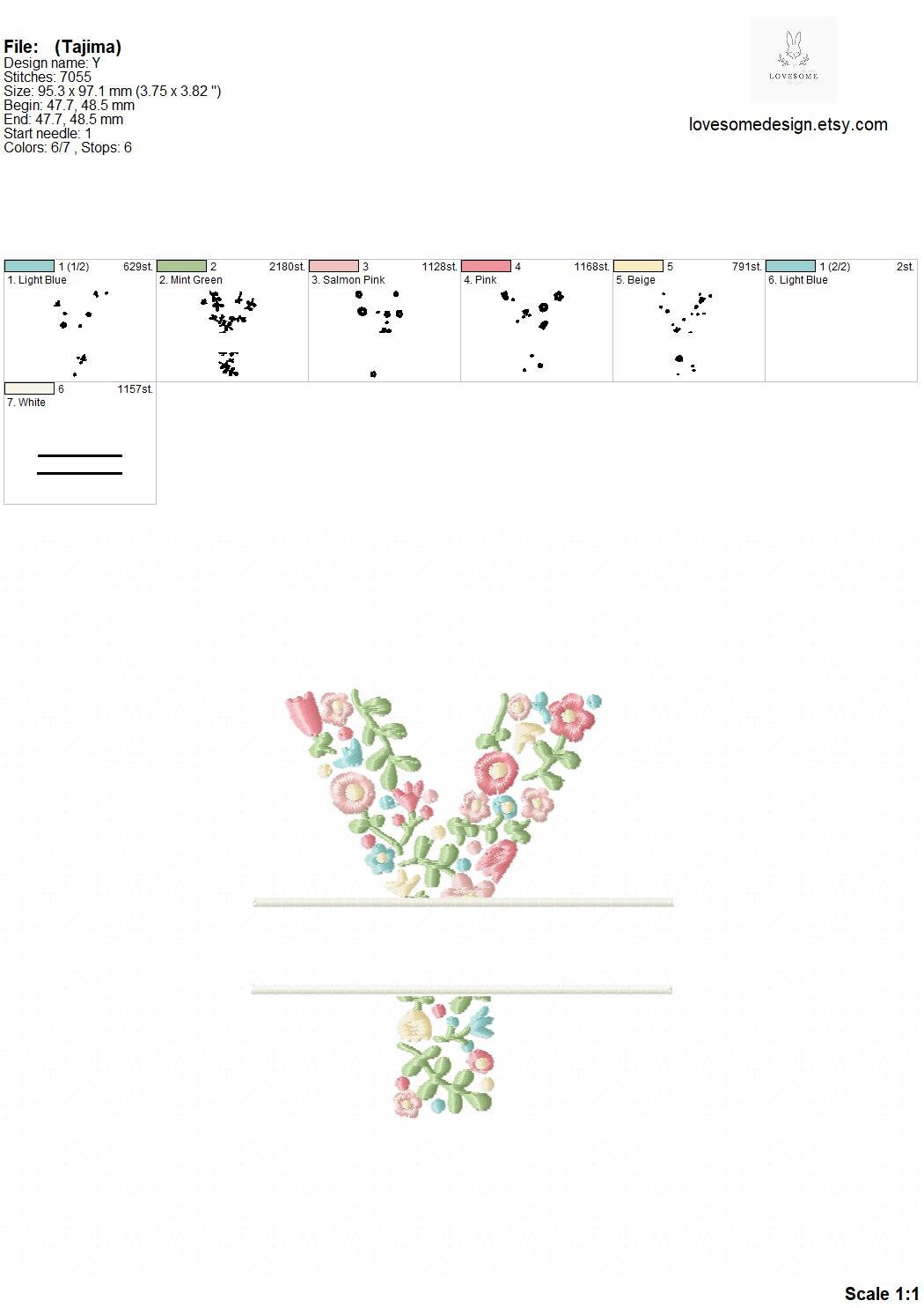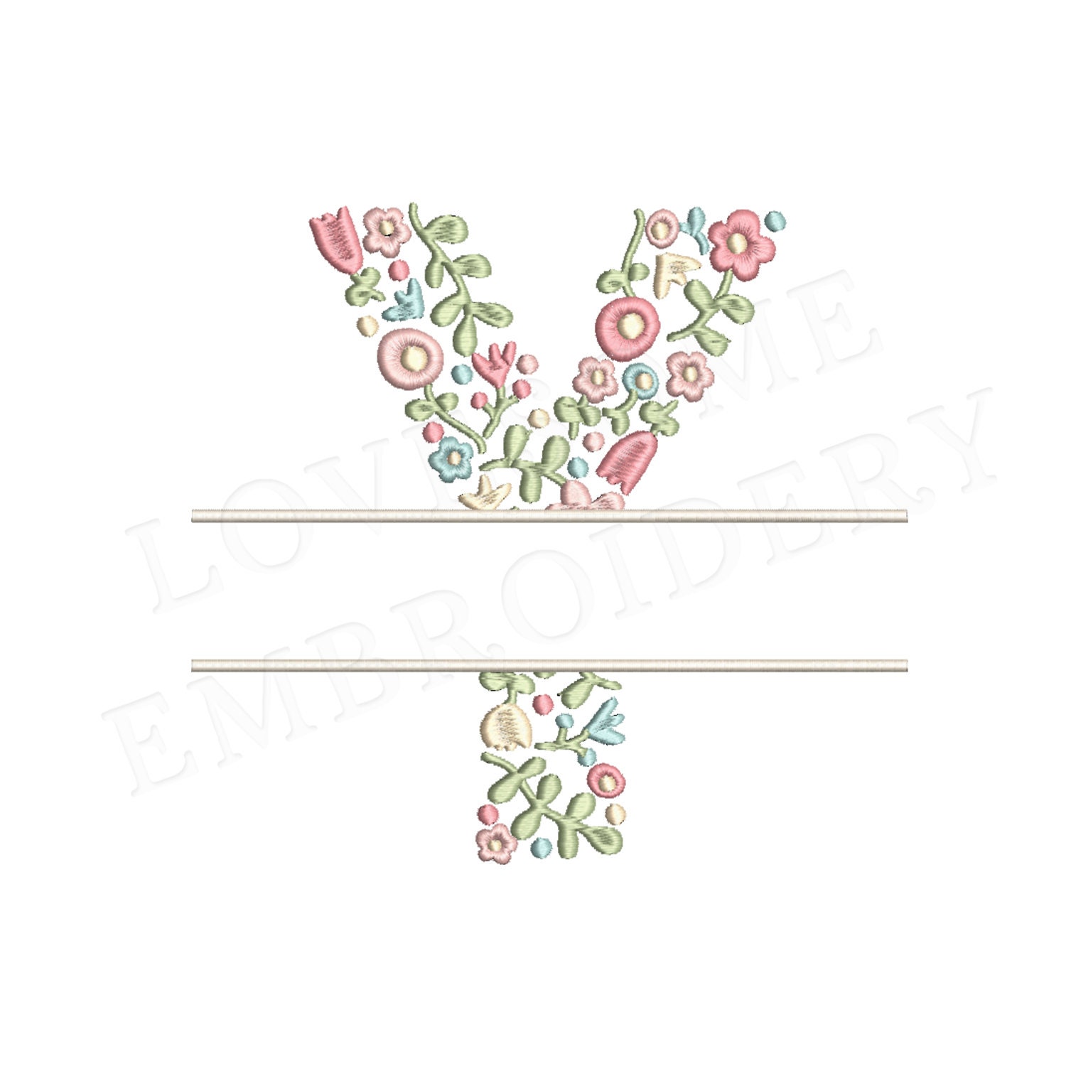NEW Split Floral Letter Y 4inch Machine Embroidery Design Dainty Flowers Split Font in Spring Colors Digital Download | Lovesome Design