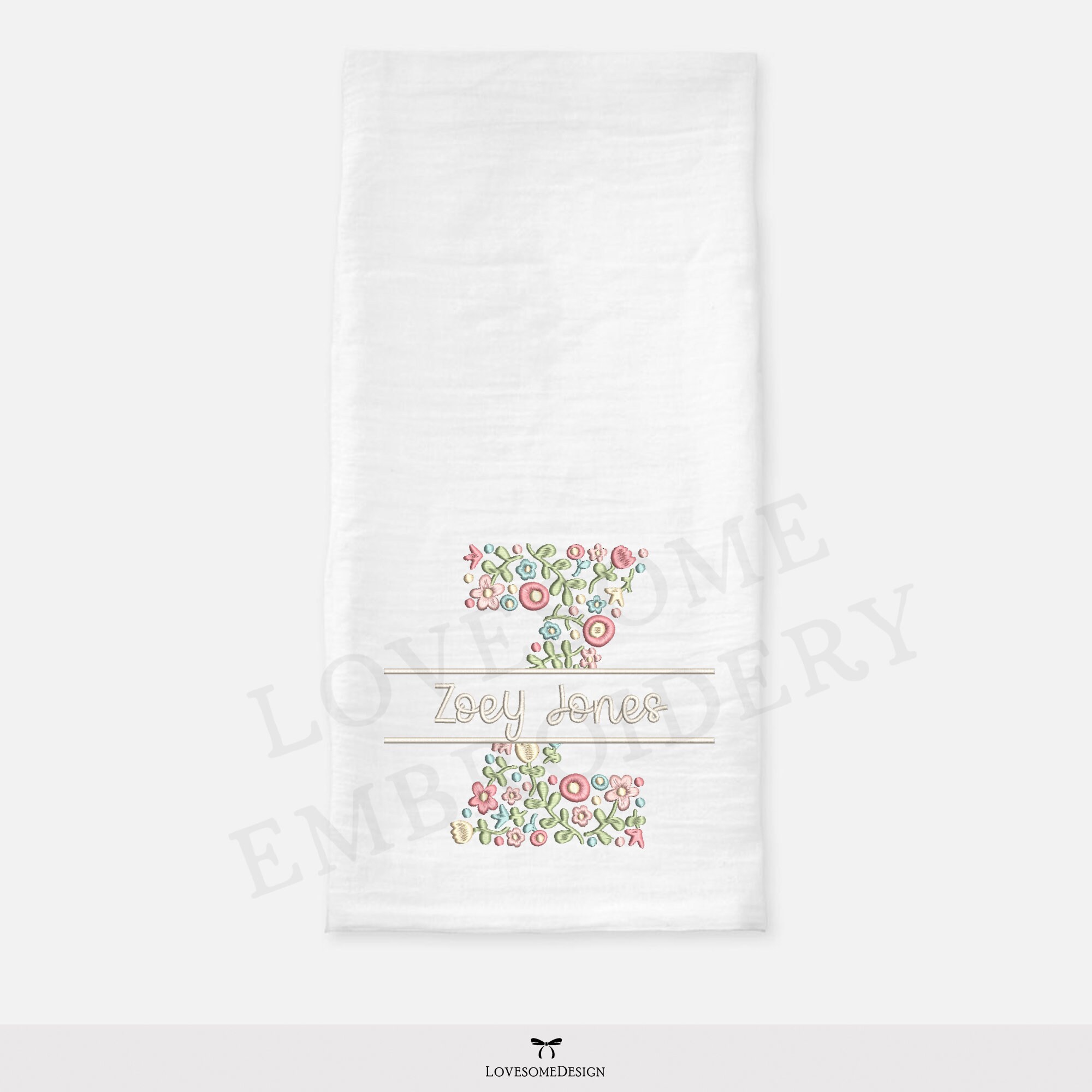 NEW Split Floral Letter Z 4inch Machine Embroidery Design Dainty Flowers Split Font in Spring Colors Digital Download | Lovesome Design