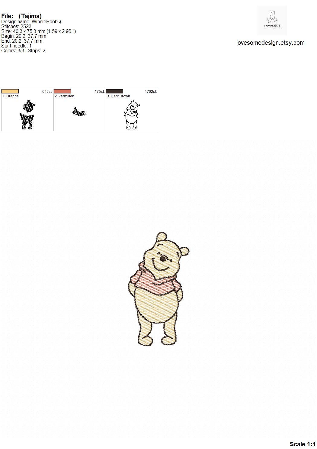 This listing features a machine embroidery file of quick stitch (aka sketch fill or light fill) Winnie the Pooh design in 3 inch size.