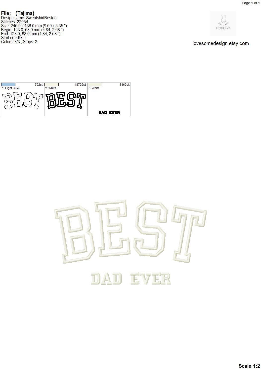 This listing features a machine embroidery design "BEST DAD EVER" for puff stitch embroidery in 10inch size.