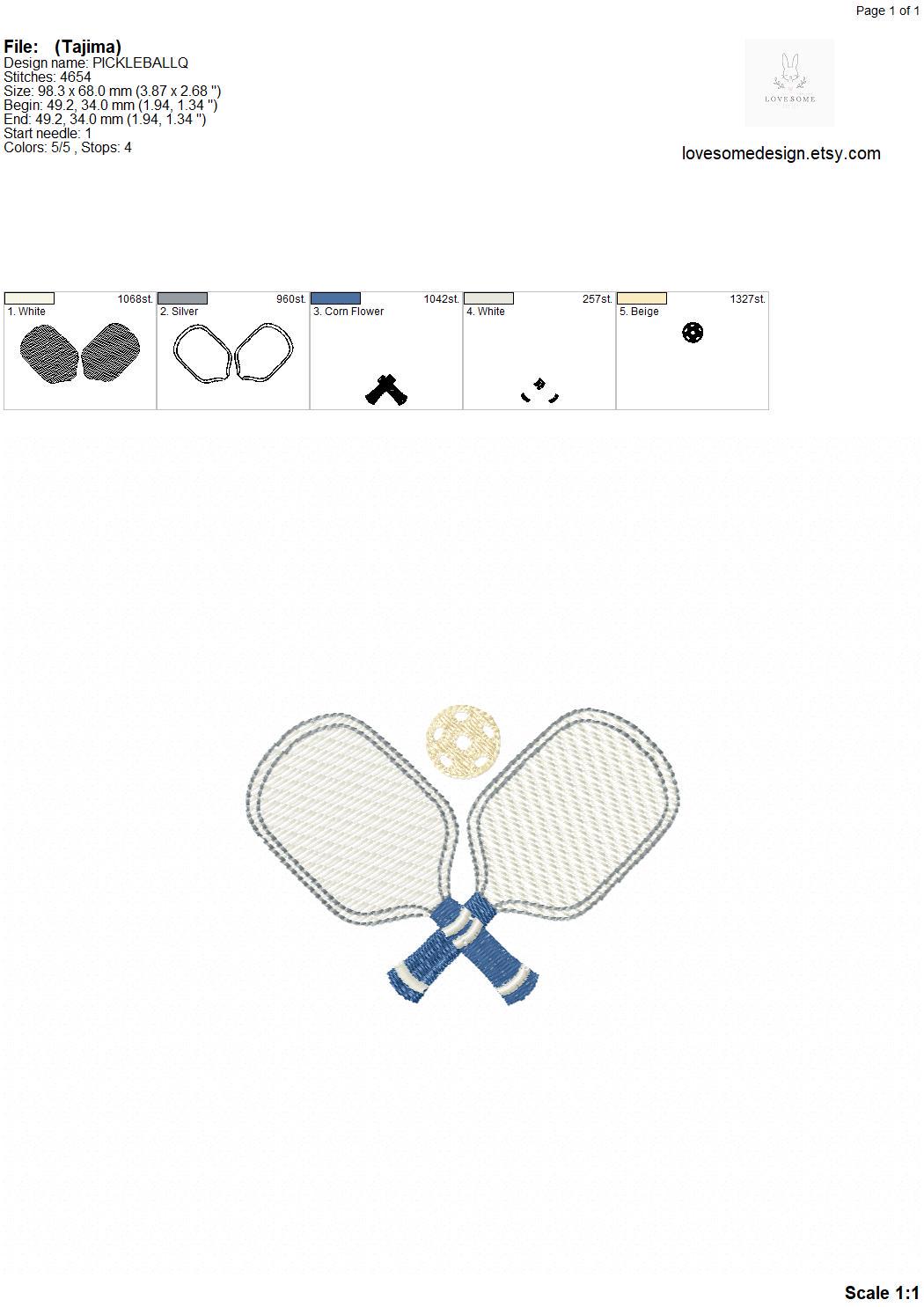 This listing includes quick stitch pickleball paddles design for machine embroidery in one size, appr. in 4inch size.