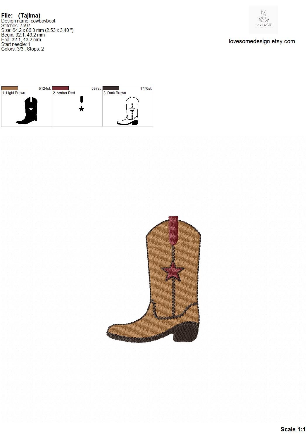Cowboy Boot Multisize Embroidery Design, Western Machine Embroidery Digital File | Lovesome Design