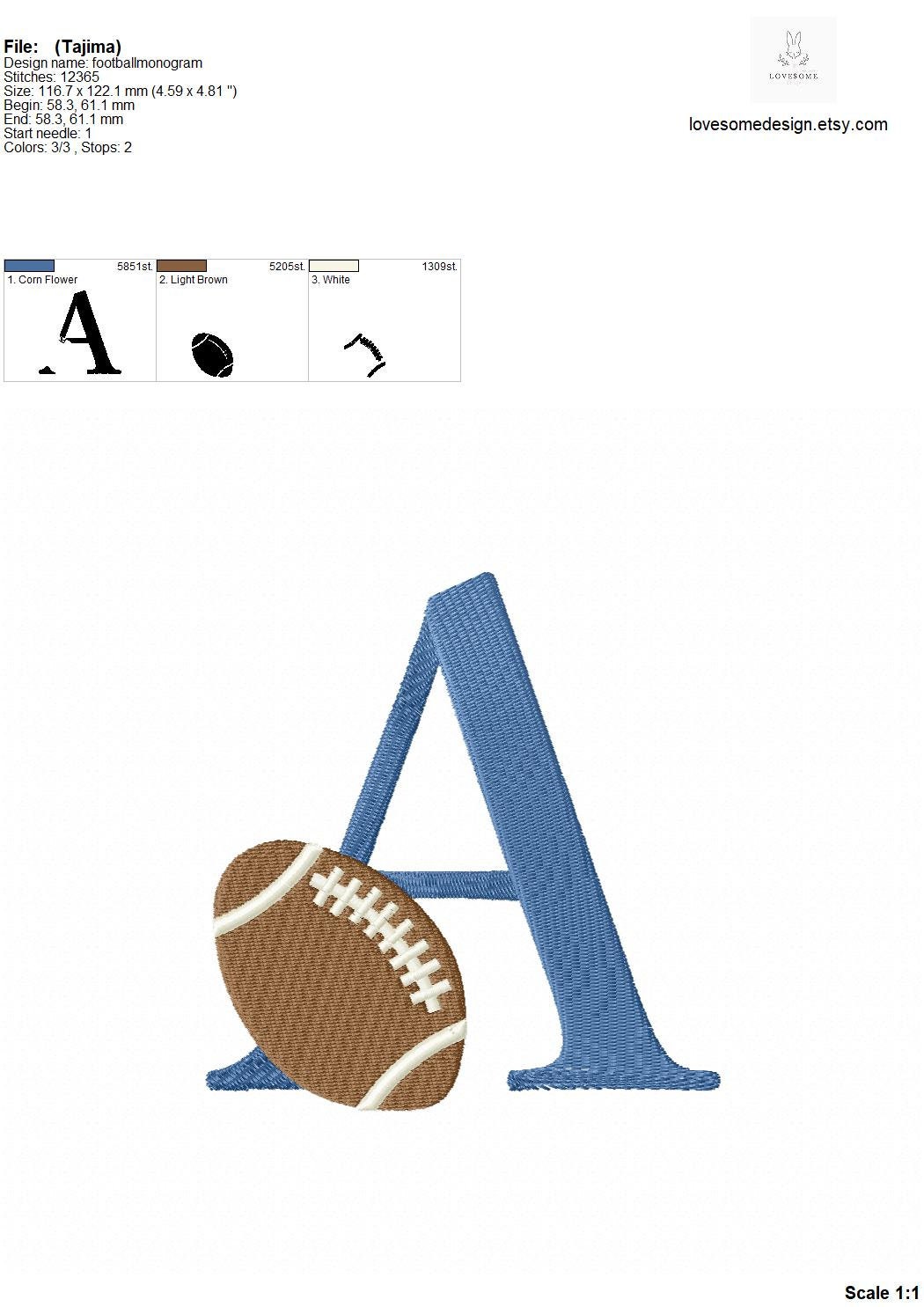 American Football 5inch Monogram A-Z Embroidery Font, Sports Machine Embroidery Digital File | Lovesome Design