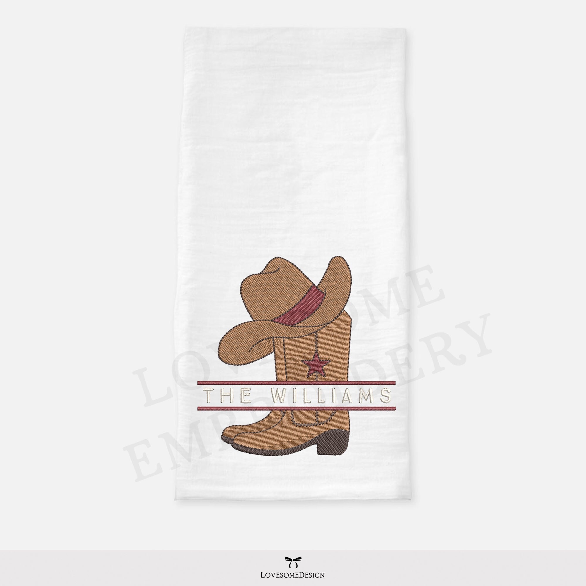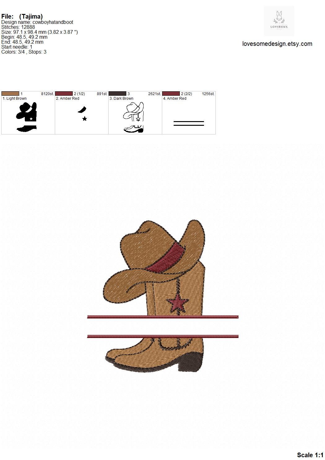 Cowboy Boots and Hat Split 4inch Embroidery Design, Western Machine Embroidery Digital File | Lovesome Design