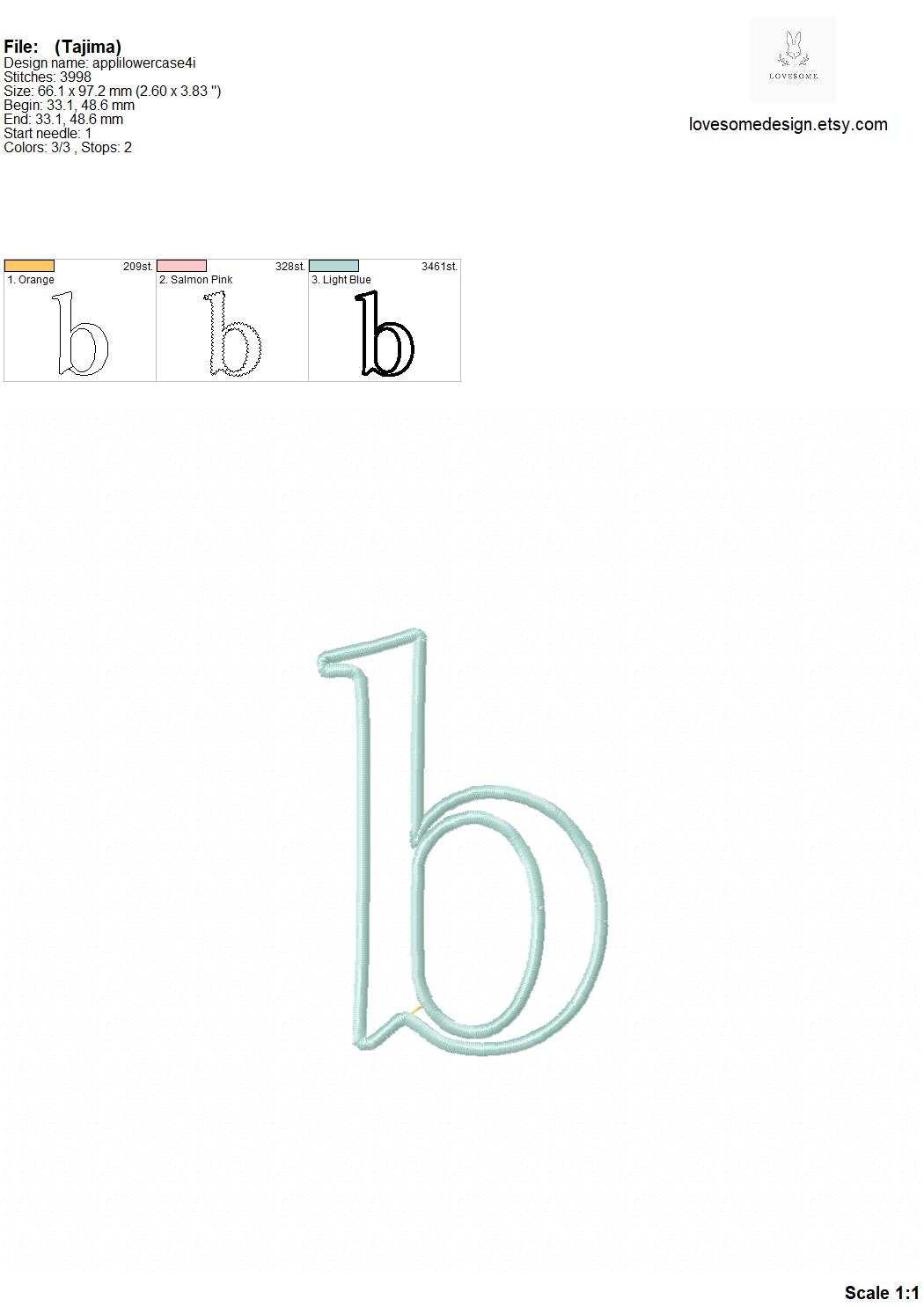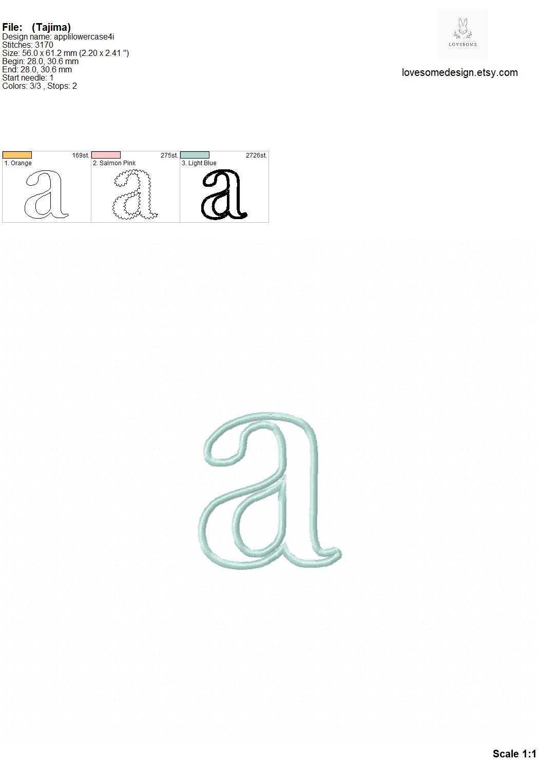 This listing features a machine embroidery font set which includes embroidery files of 26 lowercase applique letters in 4inch size perfectly matching with our Peter Rabbit Alphabets. (For the whole set, pls see the listing images.)