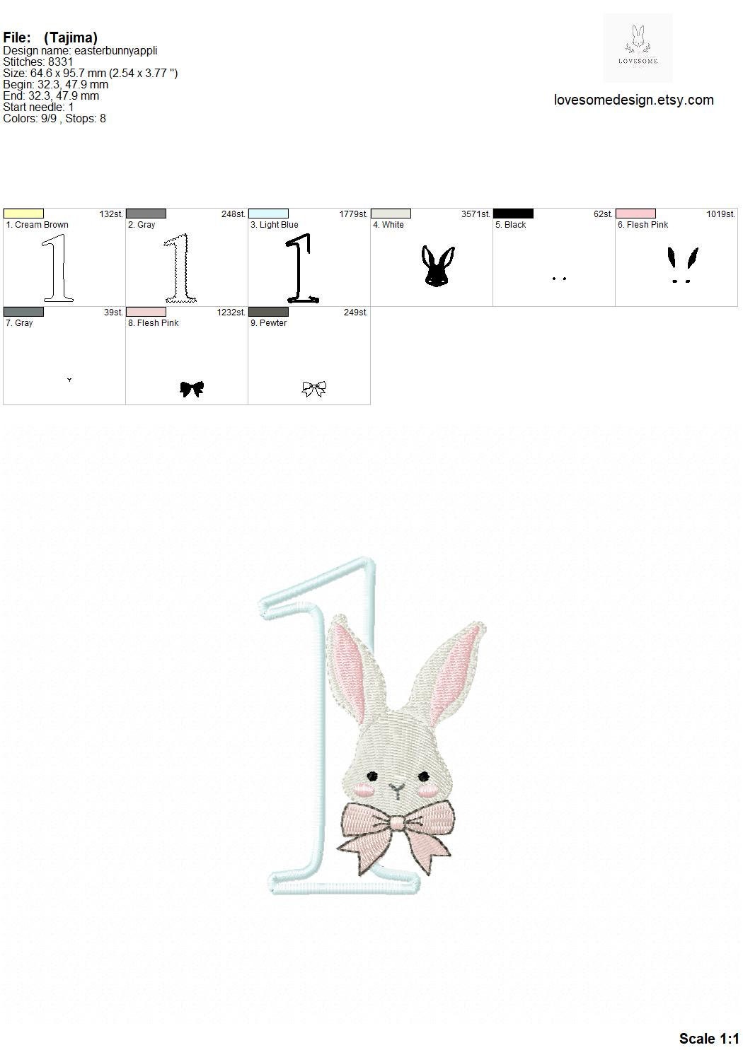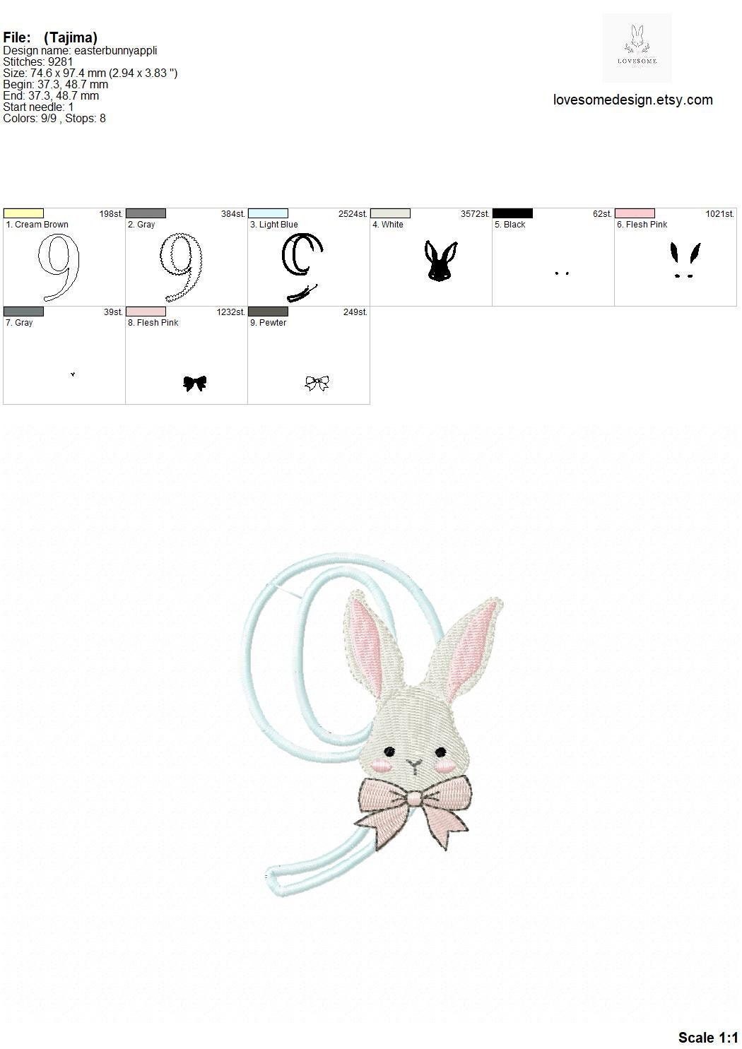 This listing features a machine embroidery numbers set which includes embroidery files of ten applique numbers (0-9) with cute bunny design in one size for 4x4 hoops for machine embroidery. (For the whole set, pls see the listing images.)