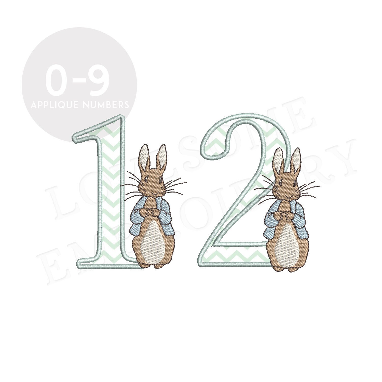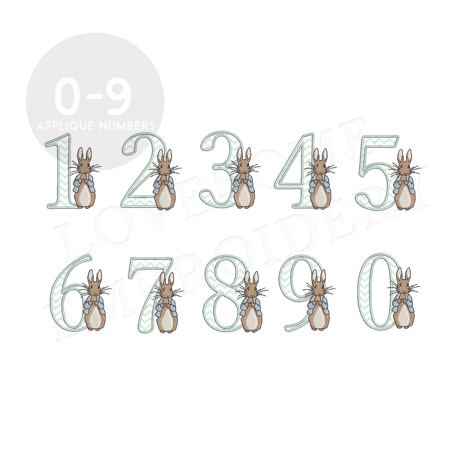 Applique Numbers 5inch Peter Rabbit 0-9 Machine Embroidery Numbers Digital Download | Lovesome Design