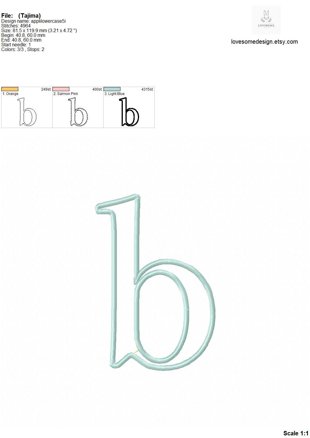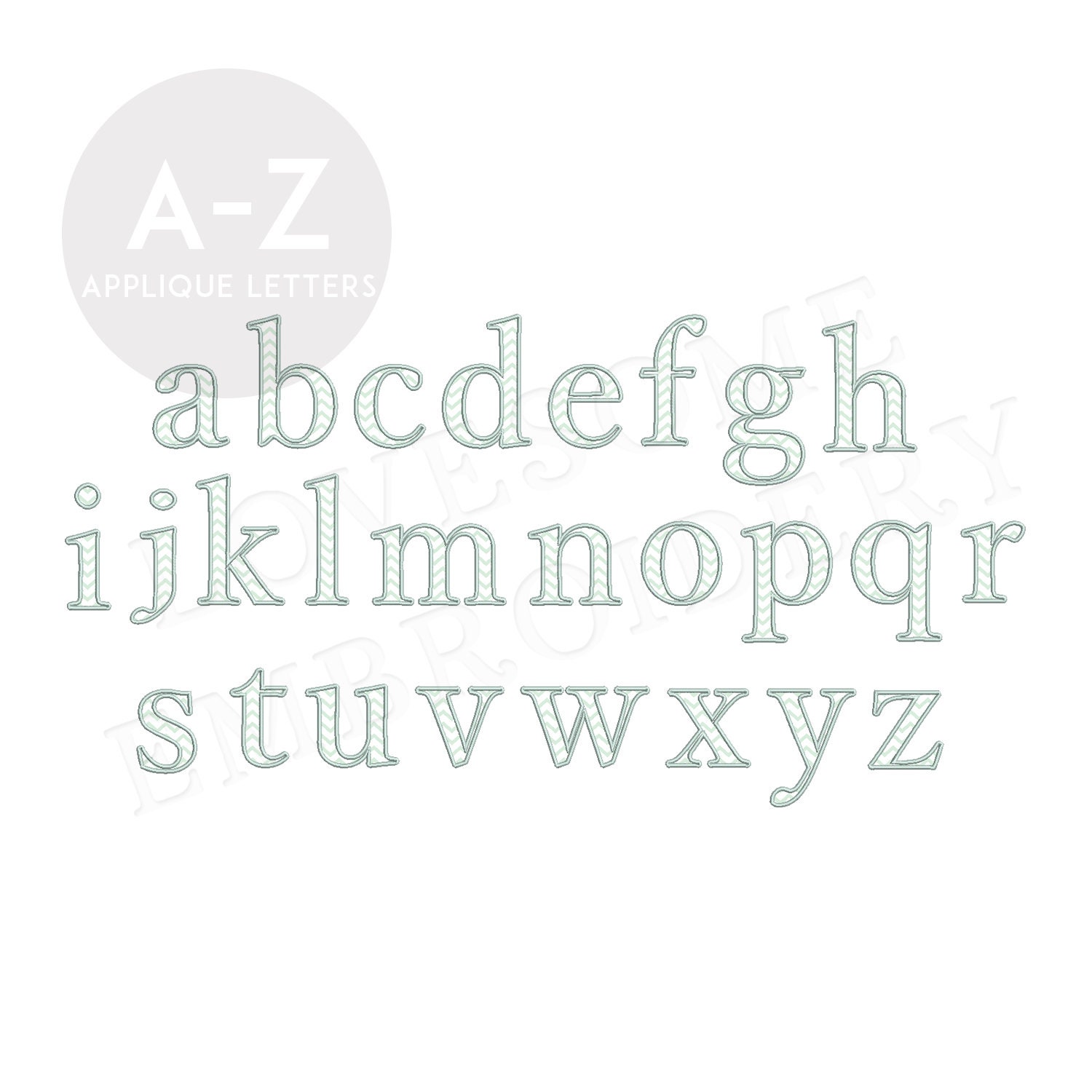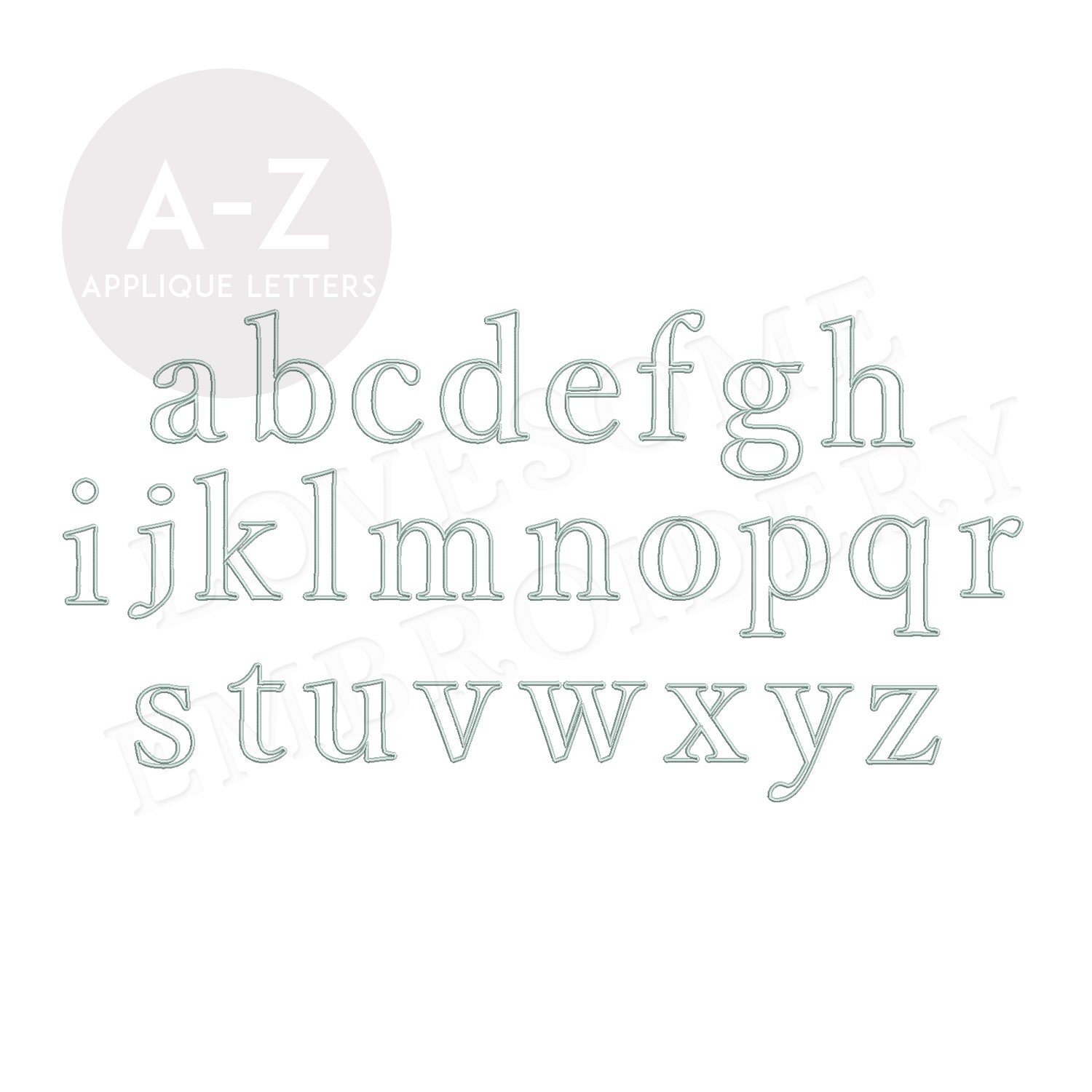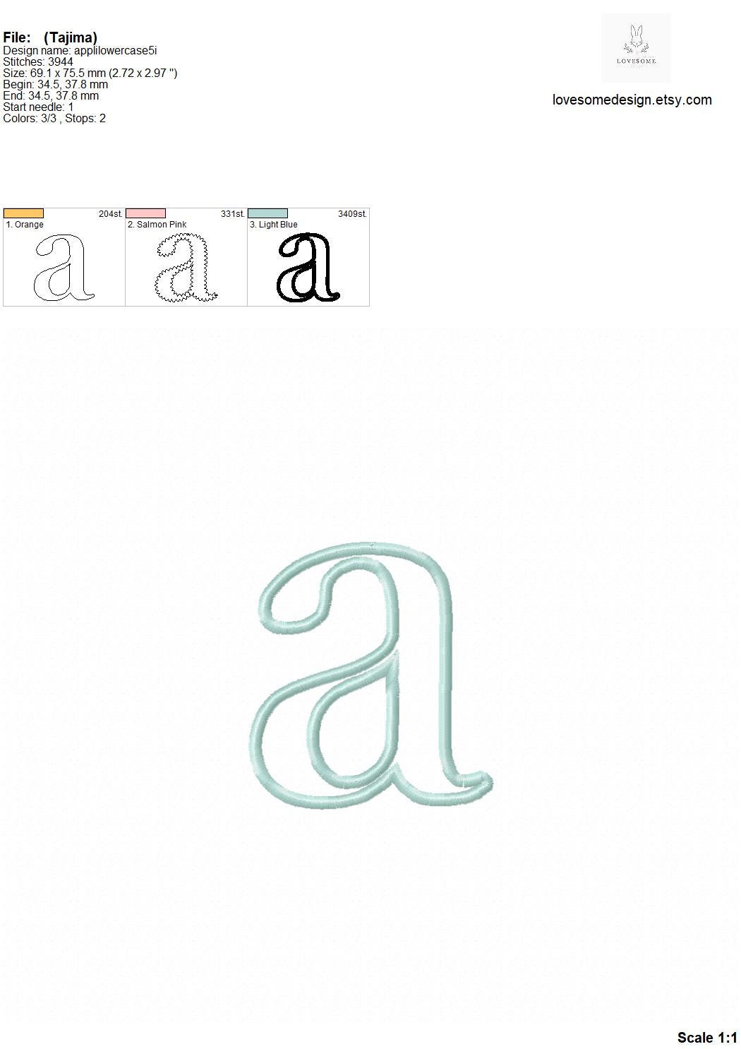 This listing features a machine embroidery font set which includes embroidery files of 26 lowercase applique letters in 5inch size perfectly matching with our Peter Rabbit Alphabets. (For the whole set, pls see the listing images.)