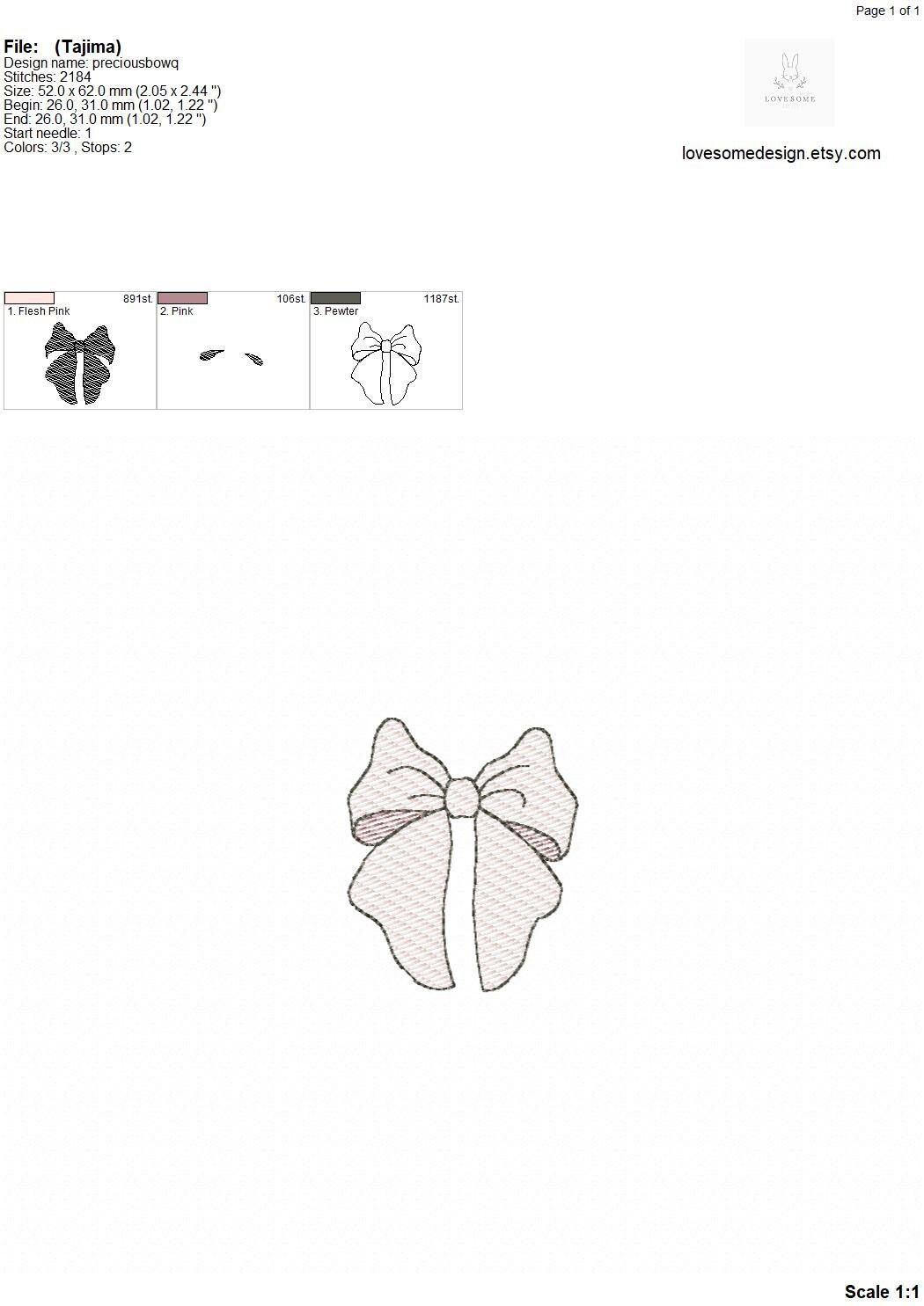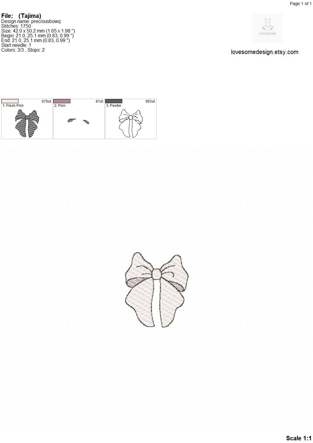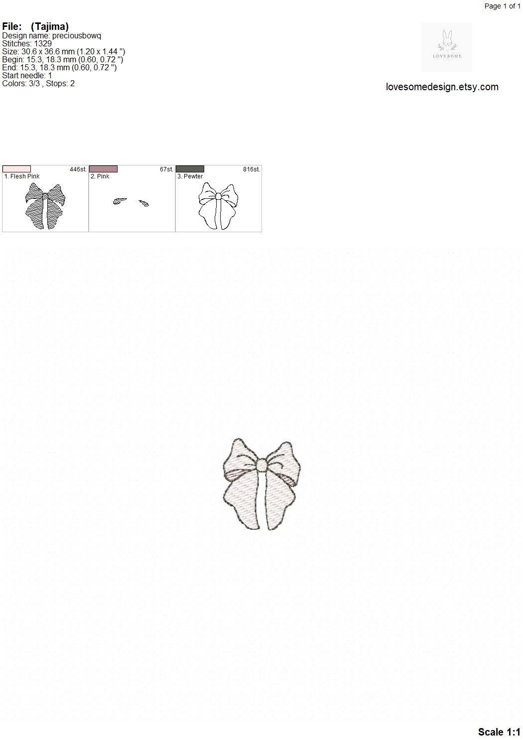 Precious Bow Quick Stitch Mini Three Sizes Machine Embroidery Design, Lovely Bows Multiple Size Embroidery Digital File | Lovesome Design