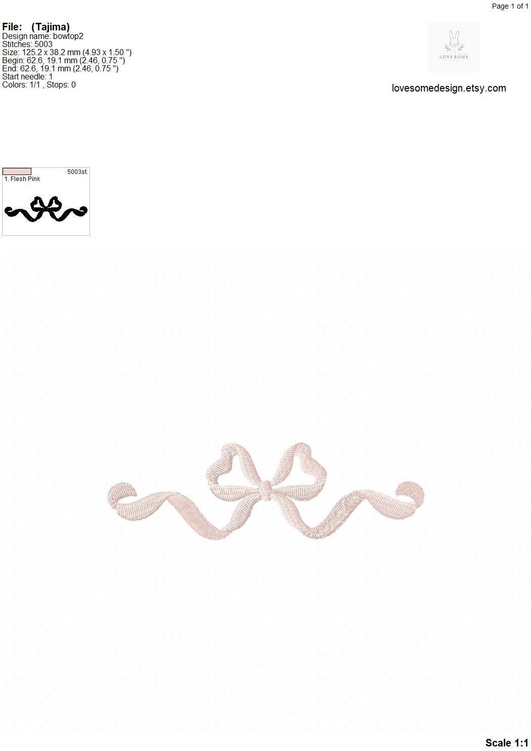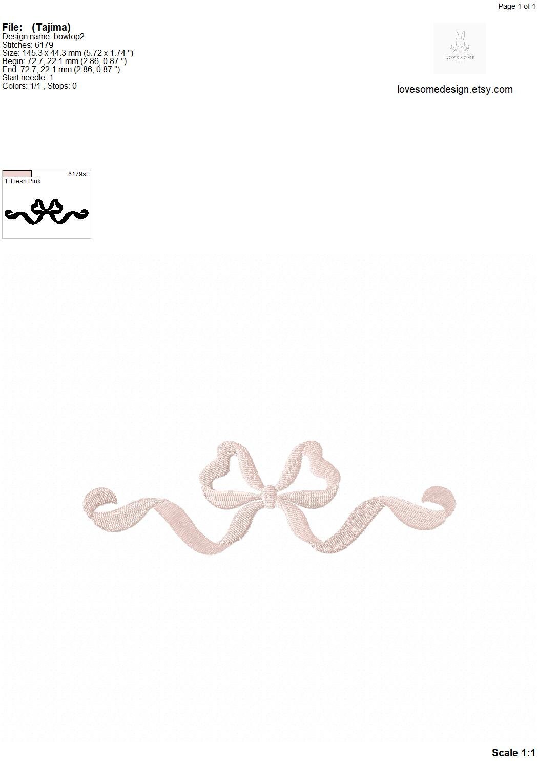 This listing includes one bow design for machine embroidery in three sizes, appr. in 4inch, 5inch and 6inch size.