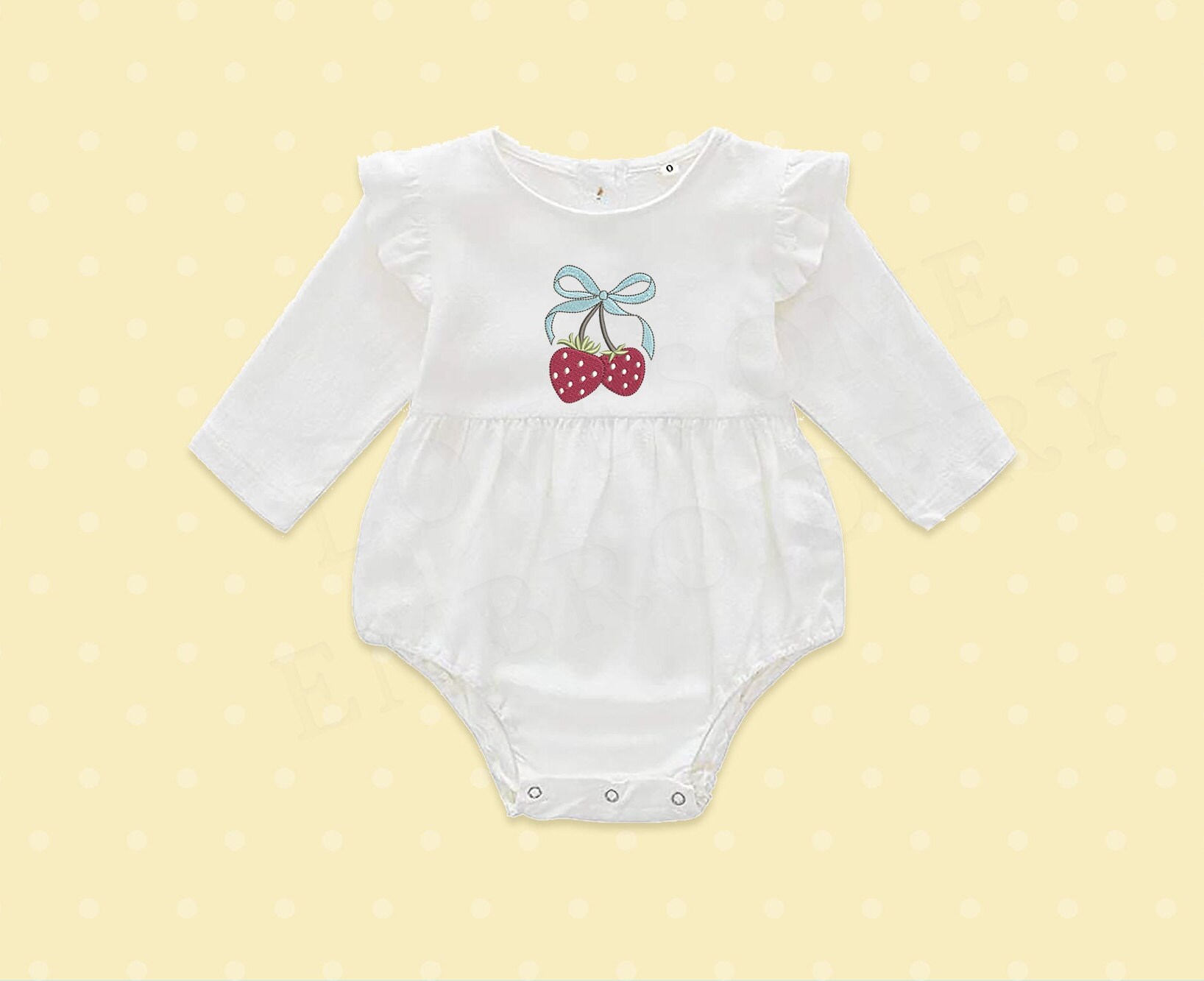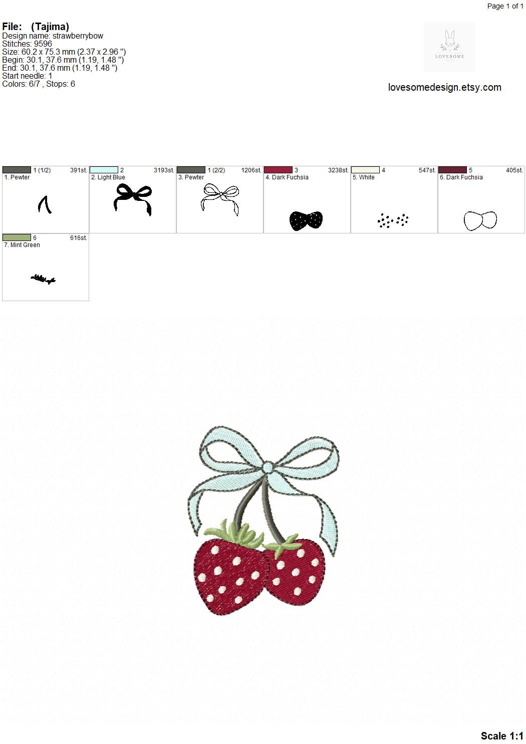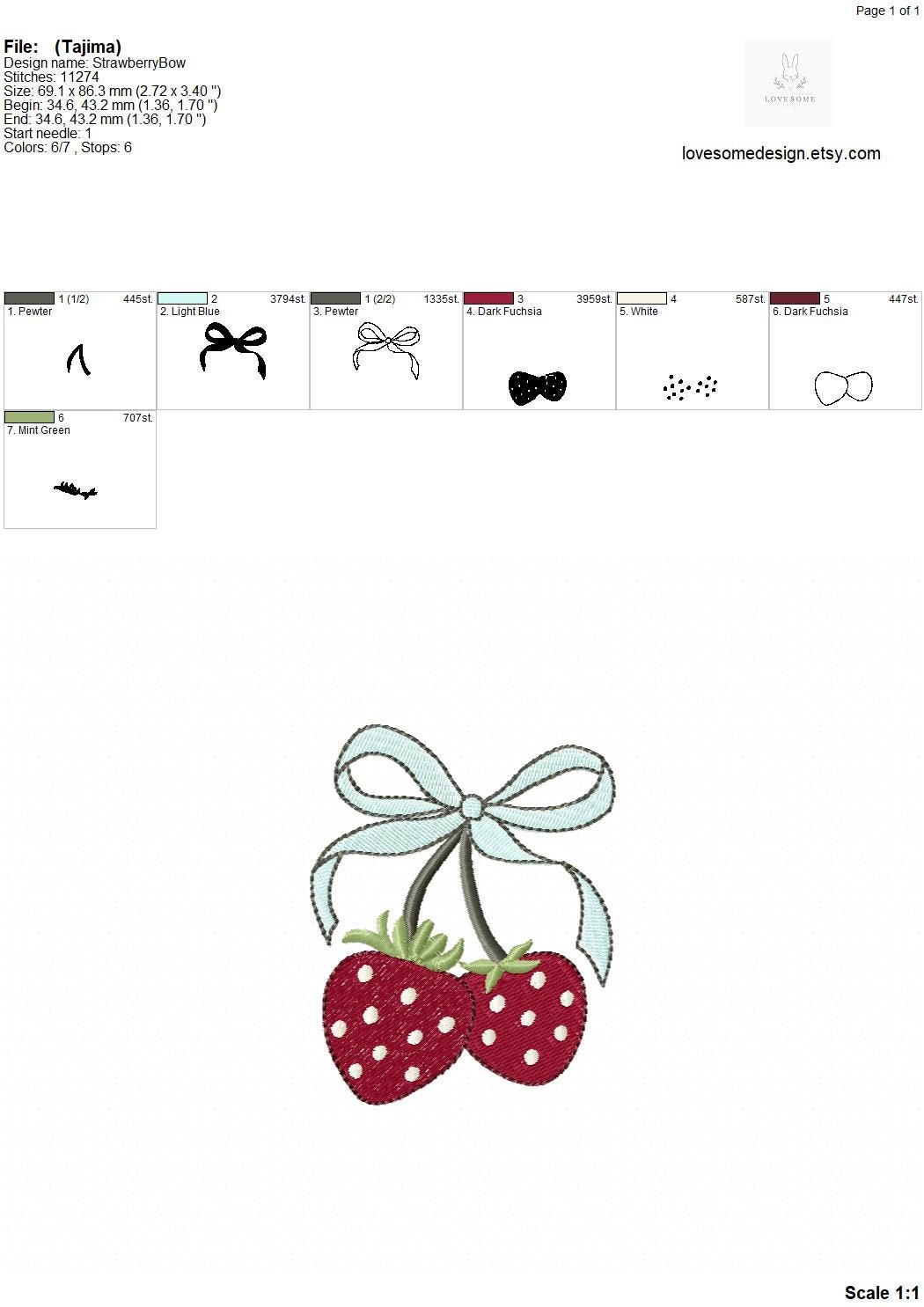 This listing includes one cute strawberry coquette design for machine embroidery in two sizes, appr. 3inch and 3.5inch size for embroidery hoops in different sizes.