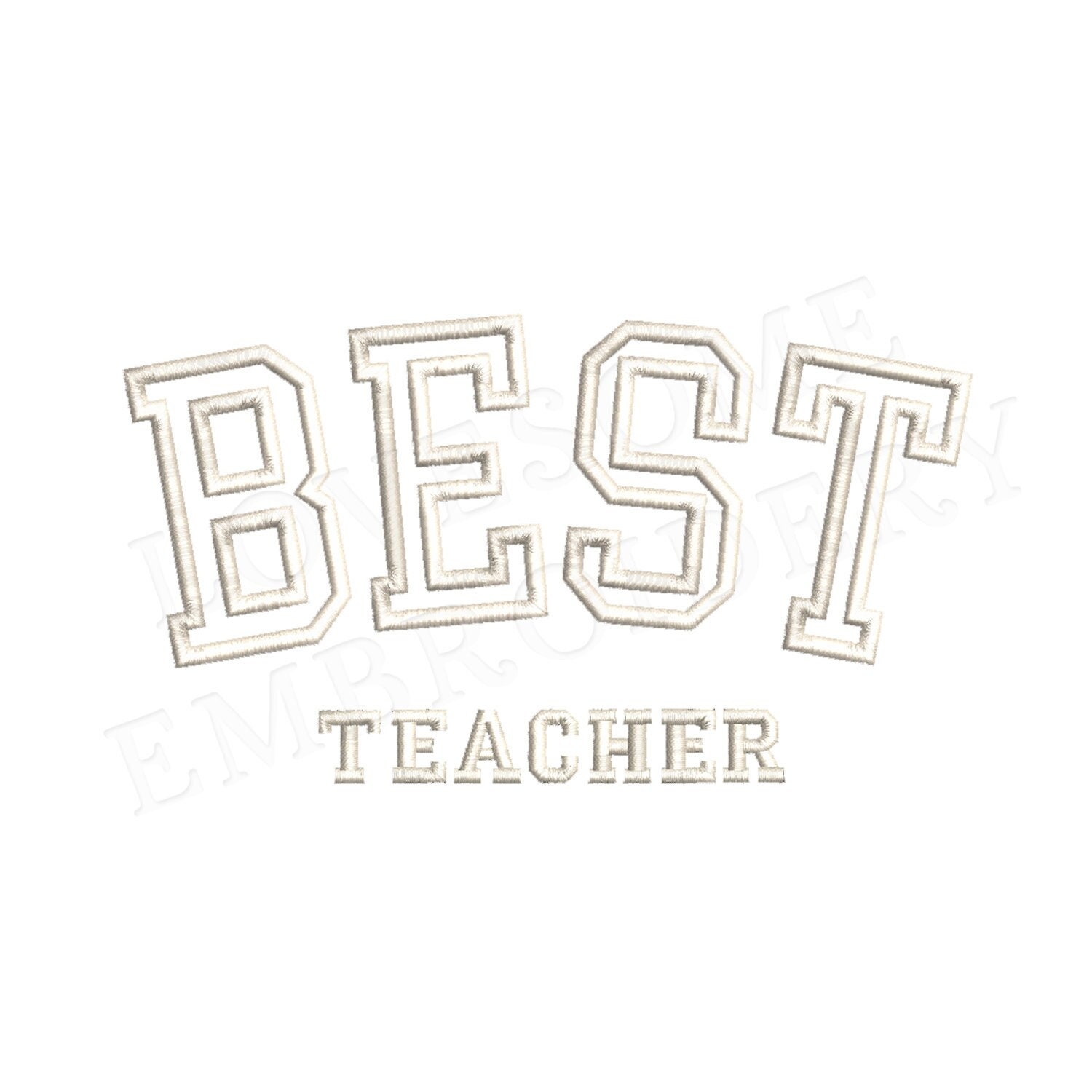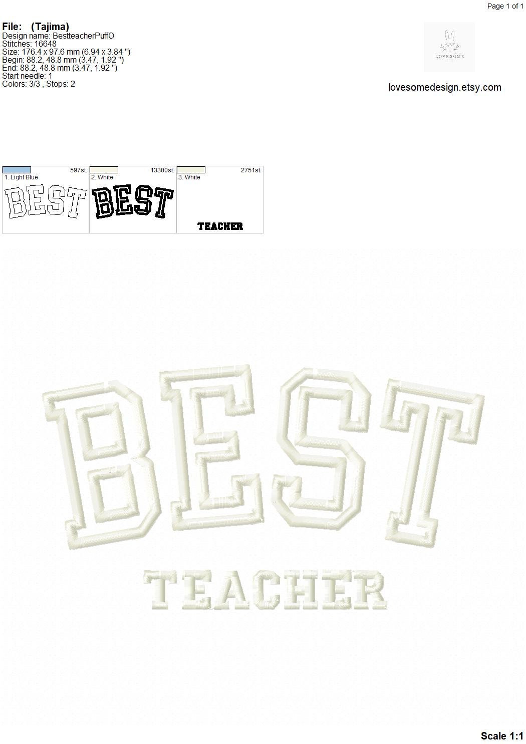 This listing features a machine embroidery design "BEST TEACHER" for puff stitch embroidery in 7inch size.