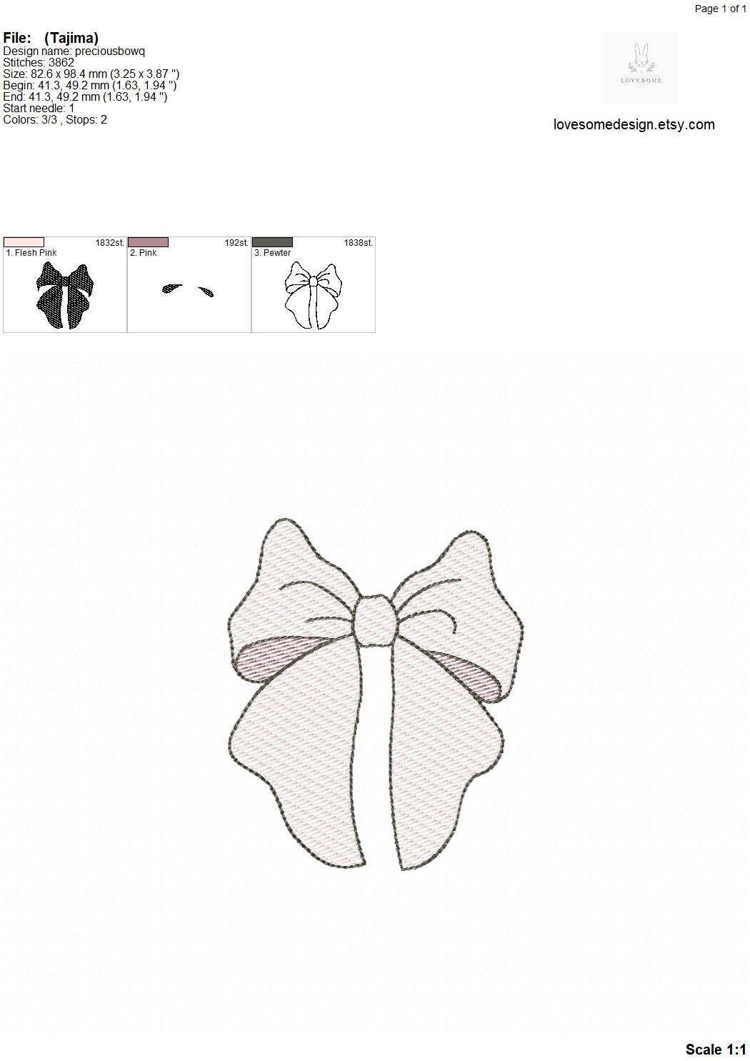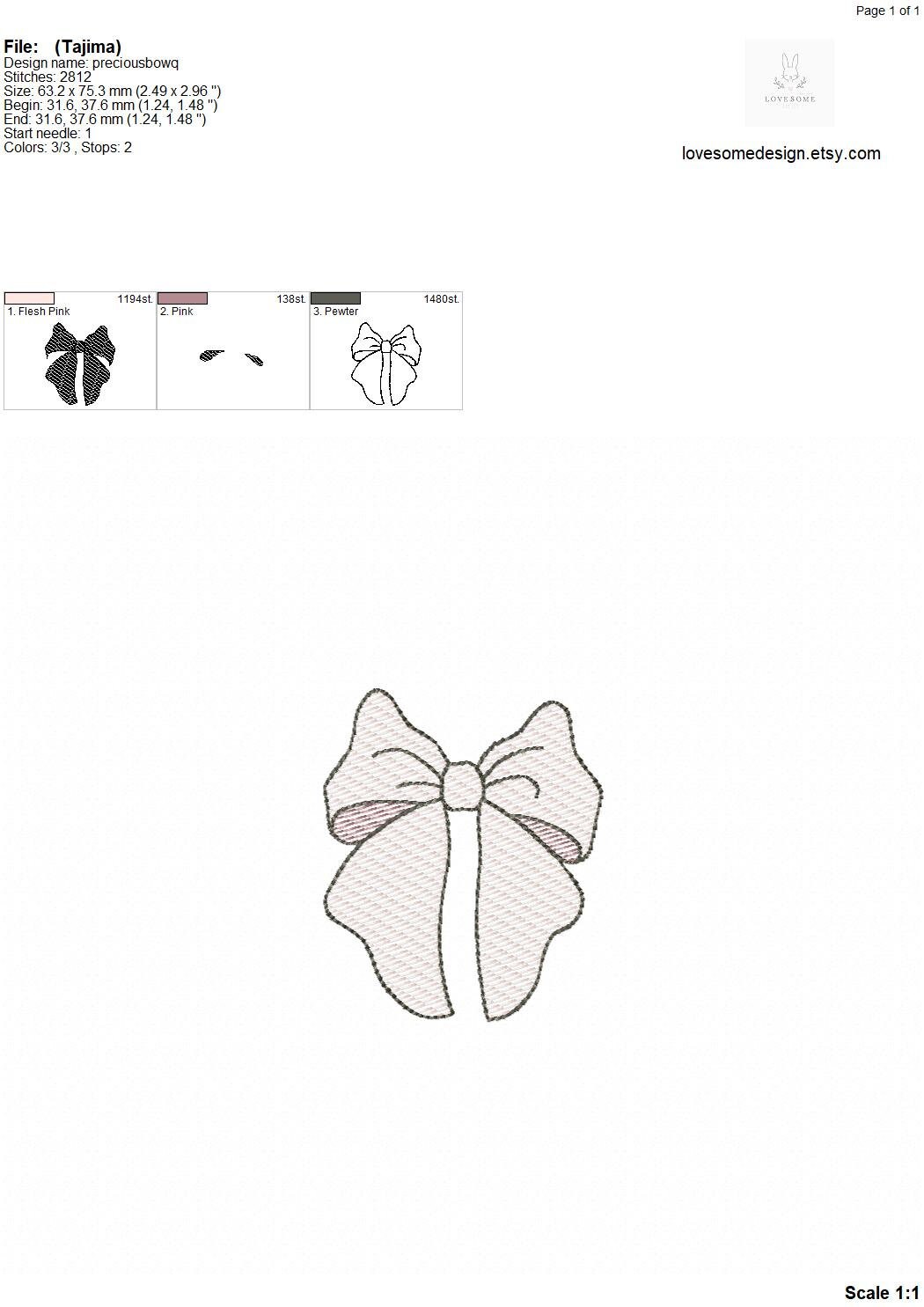 Precious Bow Quick Stitch Three Sizes Machine Embroidery Design, Lovely Mini Bows Multiple Size Embroidery Digital File | Lovesome Design