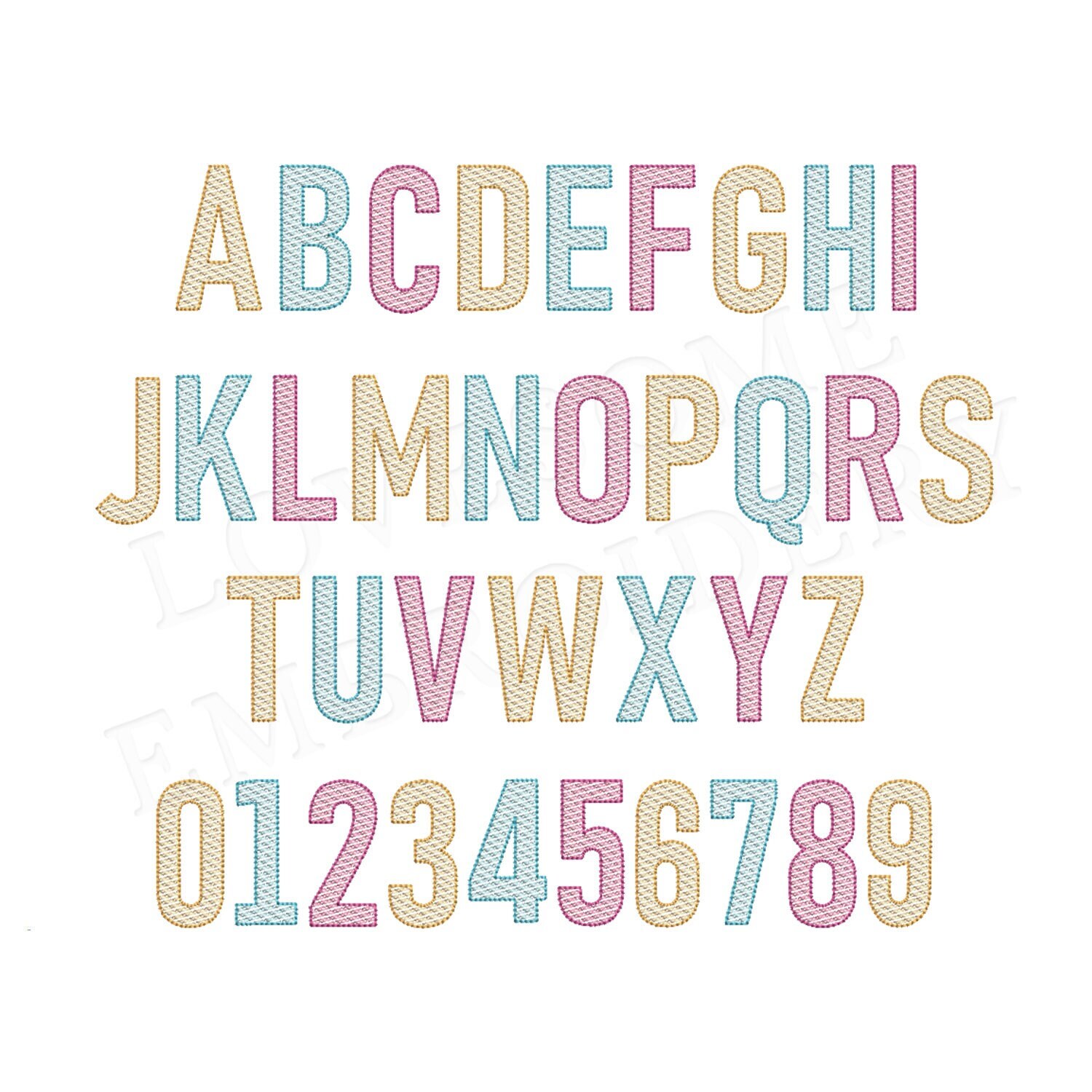 This listing features a machine embroidery font set which includes quick stitch (aka sketch fill) embroidery files of 26 uppercase letters A-Z and numbers 0-9 in 1.5inch size. (For the whole set, pls see the listing images.)