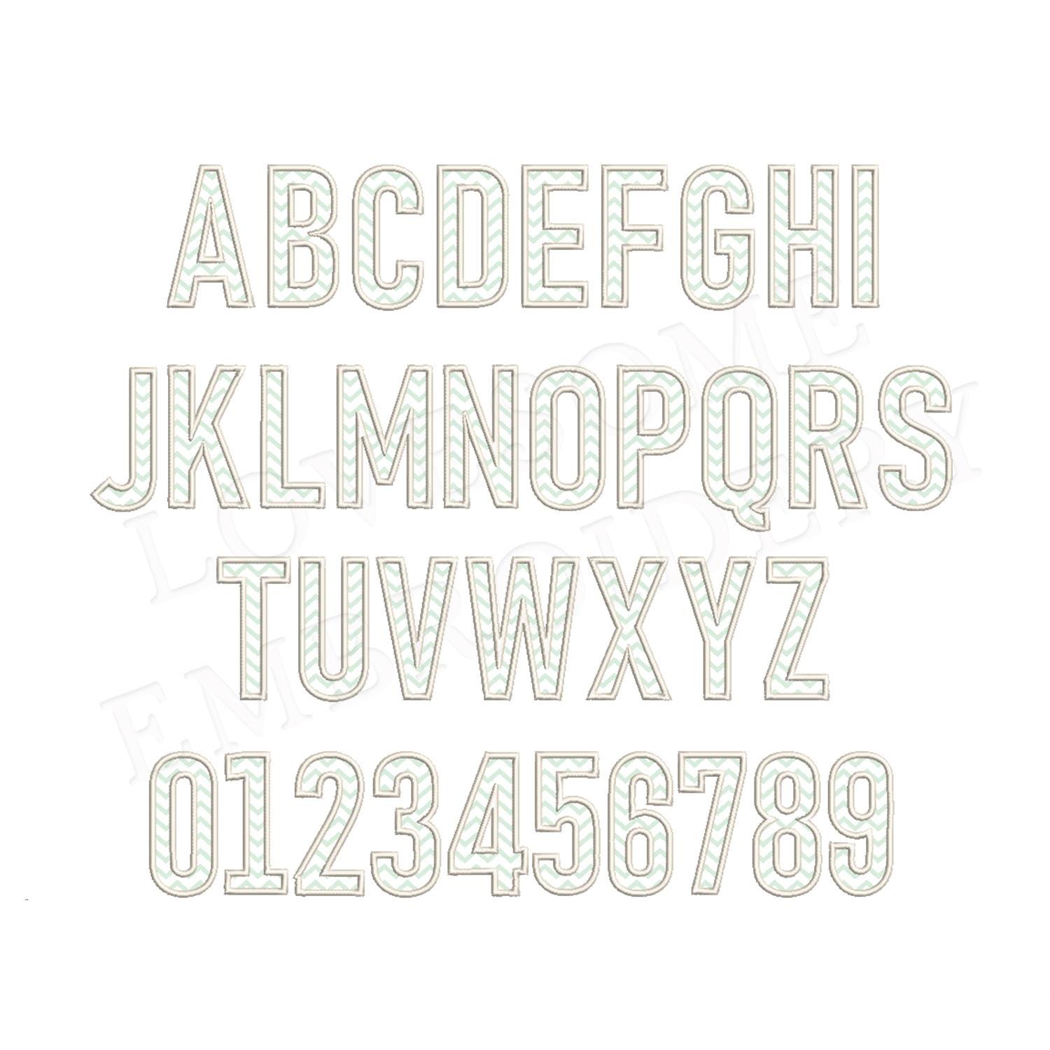 This listing features a machine embroidery font set which includes applique embroidery files of 26 uppercase letters A-Z and numbers 0-9 in 2.5inch size. (For the whole set, pls see the listing images.)