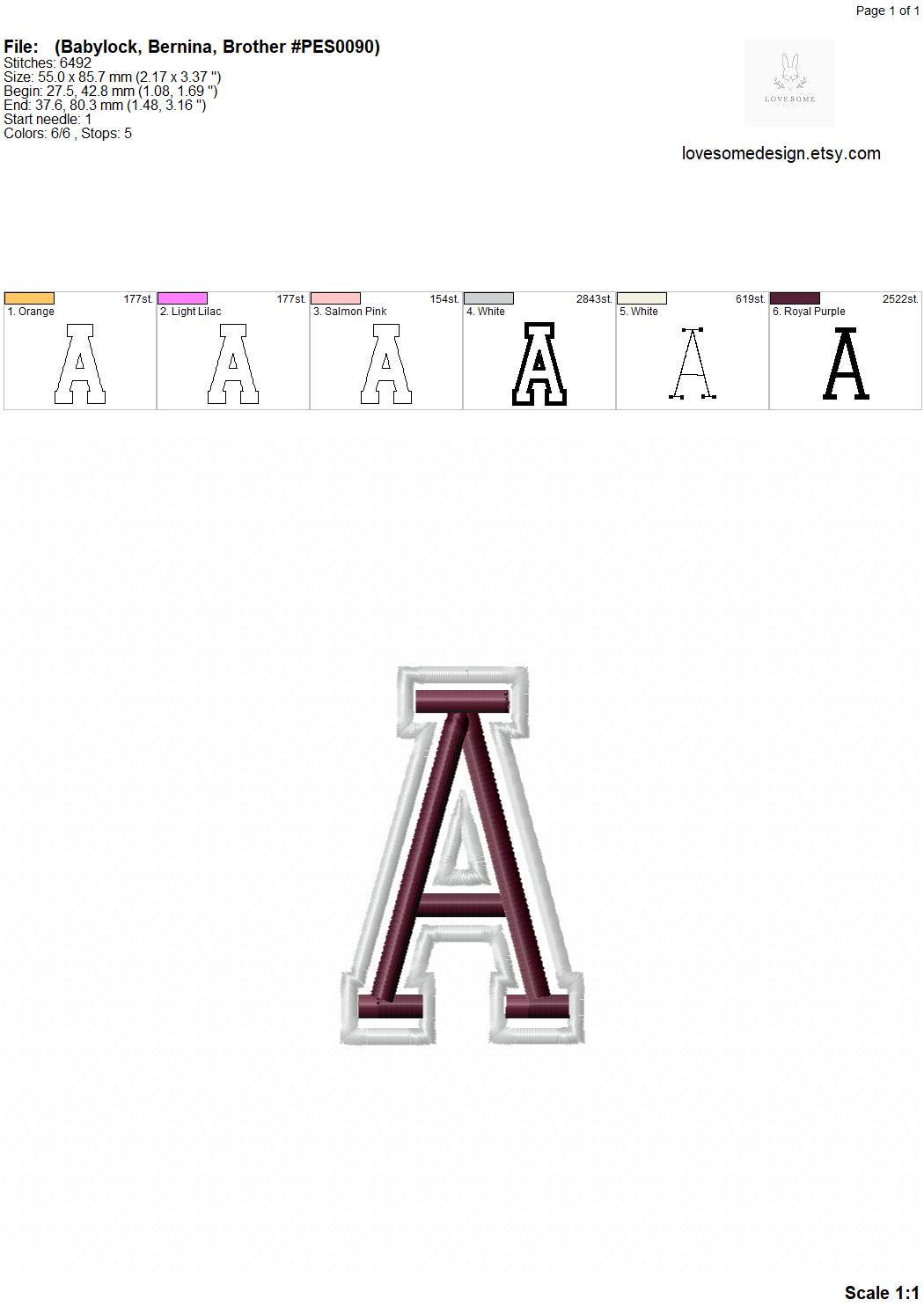College Applique 3.5inch Puff Font A-Z Machine Embroidery Sports Letters, Puff 3D Foam Embroidery Font Digital Download | Lovesome Design