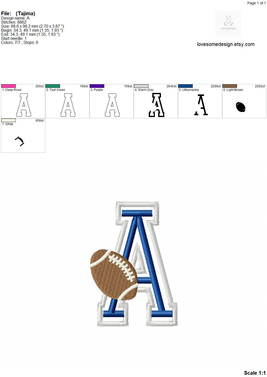 American Football 4inch Applique Satin Font A-Z Machine Embroidery Sports Letters, Applique Varsity Embroidery Font | Lovesome Design