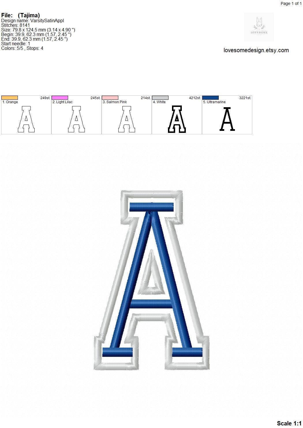 College Applique Satin 5inch Font A-Z Machine Embroidery Sports Letters, Applique Varsity Embroidery Font | Lovesome Design