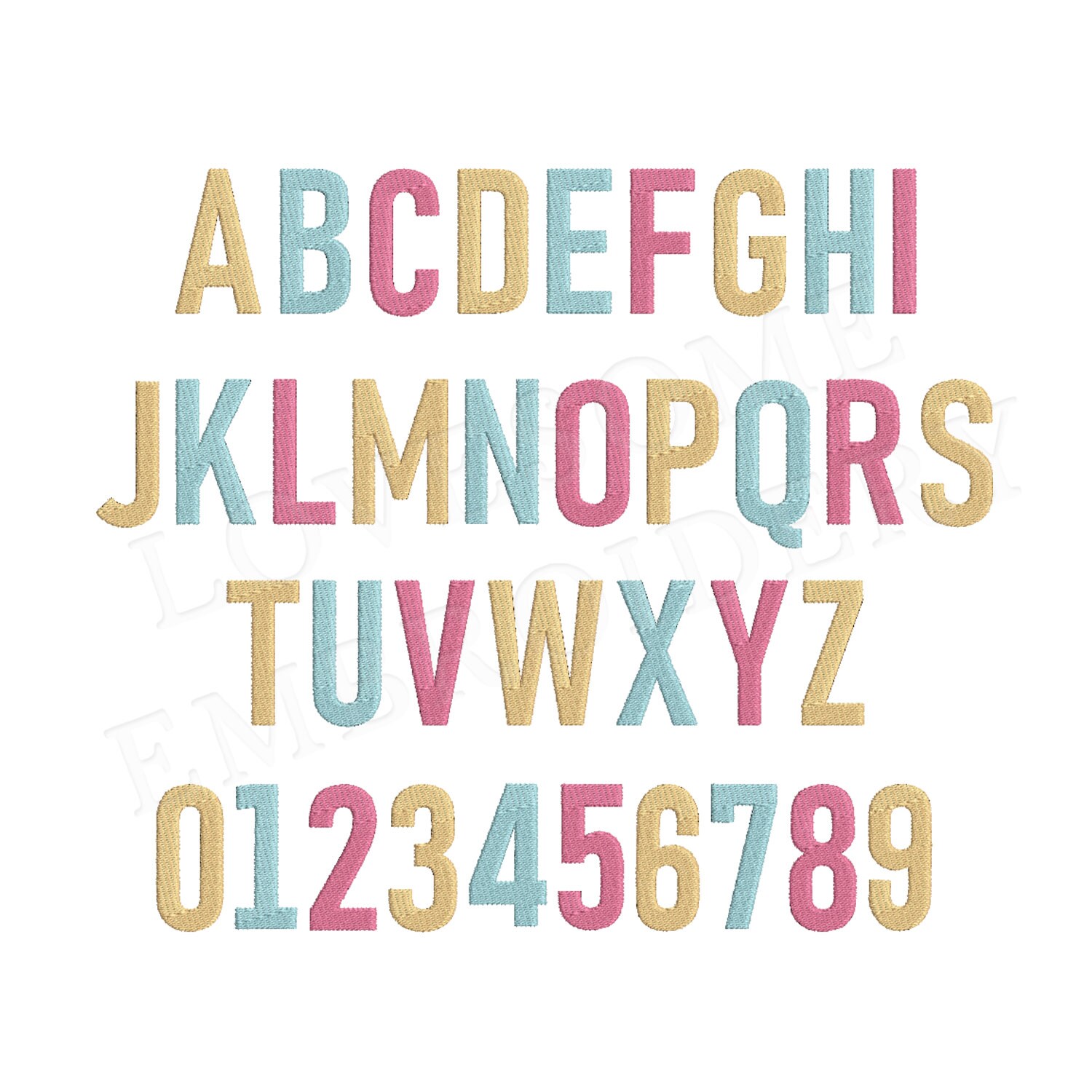 This machine embroidery alphabet set is for 4x4 embroidery hoops. Great for customizing and monogramming. Either you are a DIYer or a small business owner, our embroidery fonts are perfect for your projects with its all colorful details.