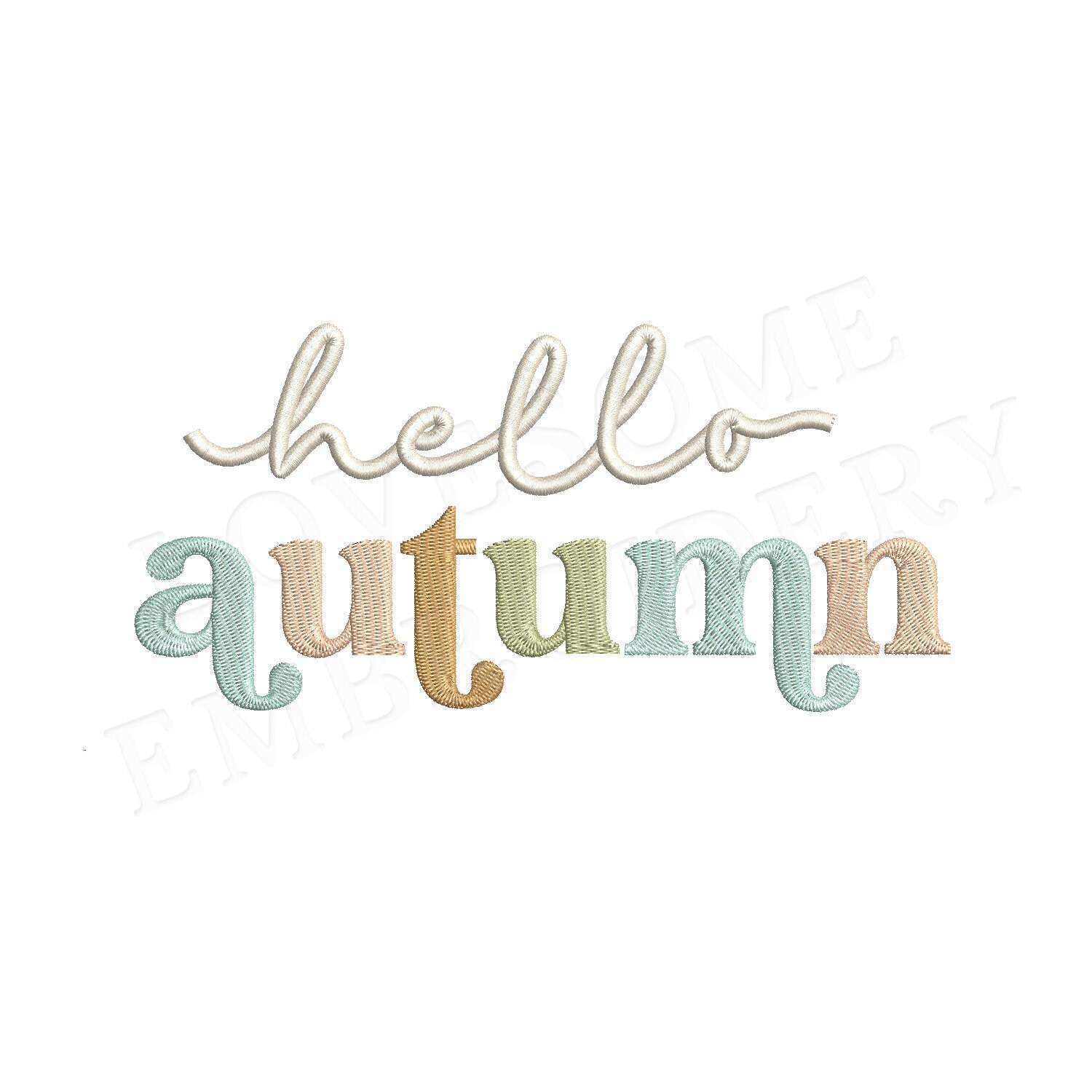 This listing features a machine embroidery design of lettering "Hello Autumn" for retro style funky autumn sweatshirt or groovy style fall tshirt embroidery in 5inch size.